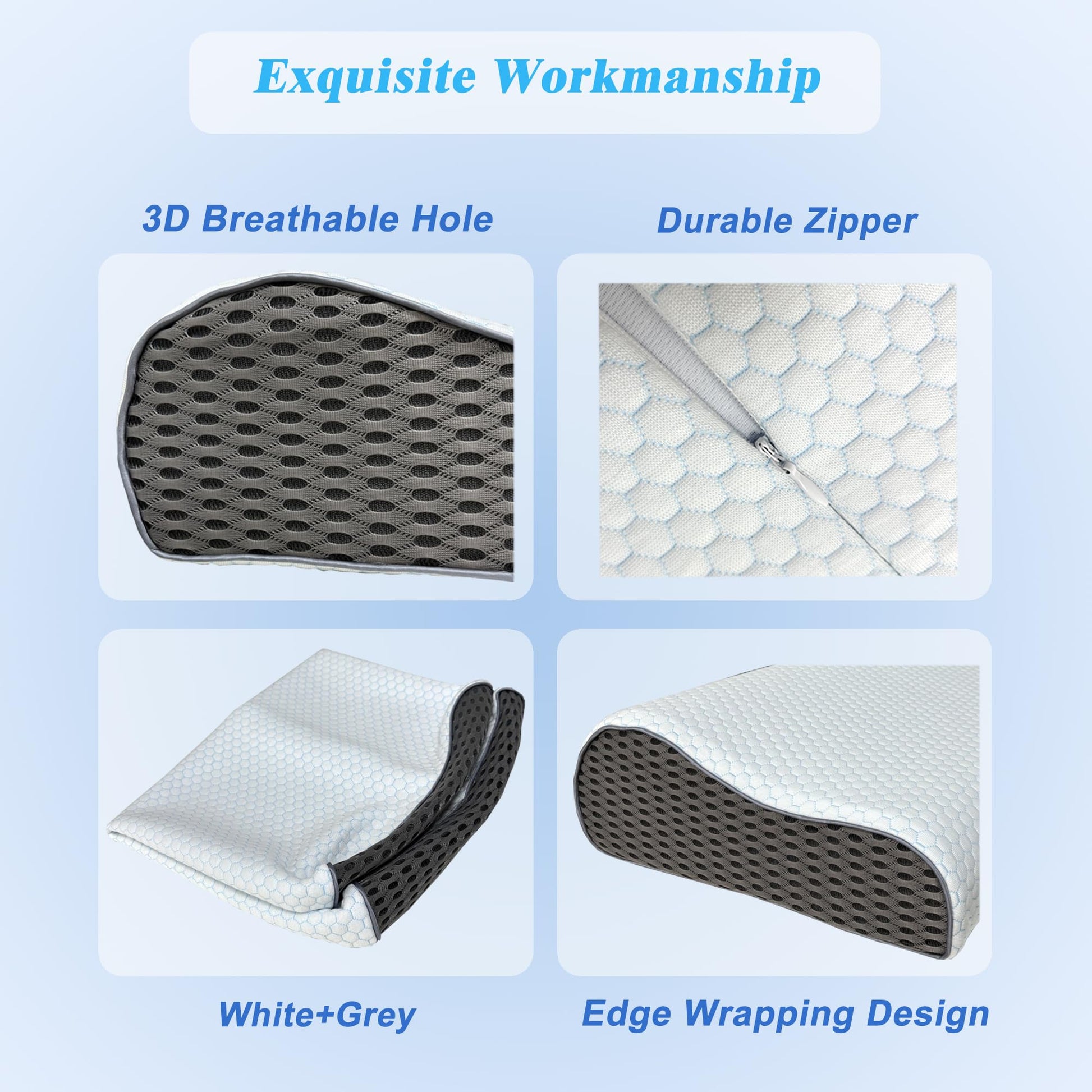 LeoTube Cervical Pillow Case for Neck Pillows, Compatible with Pillows for Neck and Shoulder Pain & Cervical Neck Pillows for Sleeping-Cover ONLY (White+Gray)