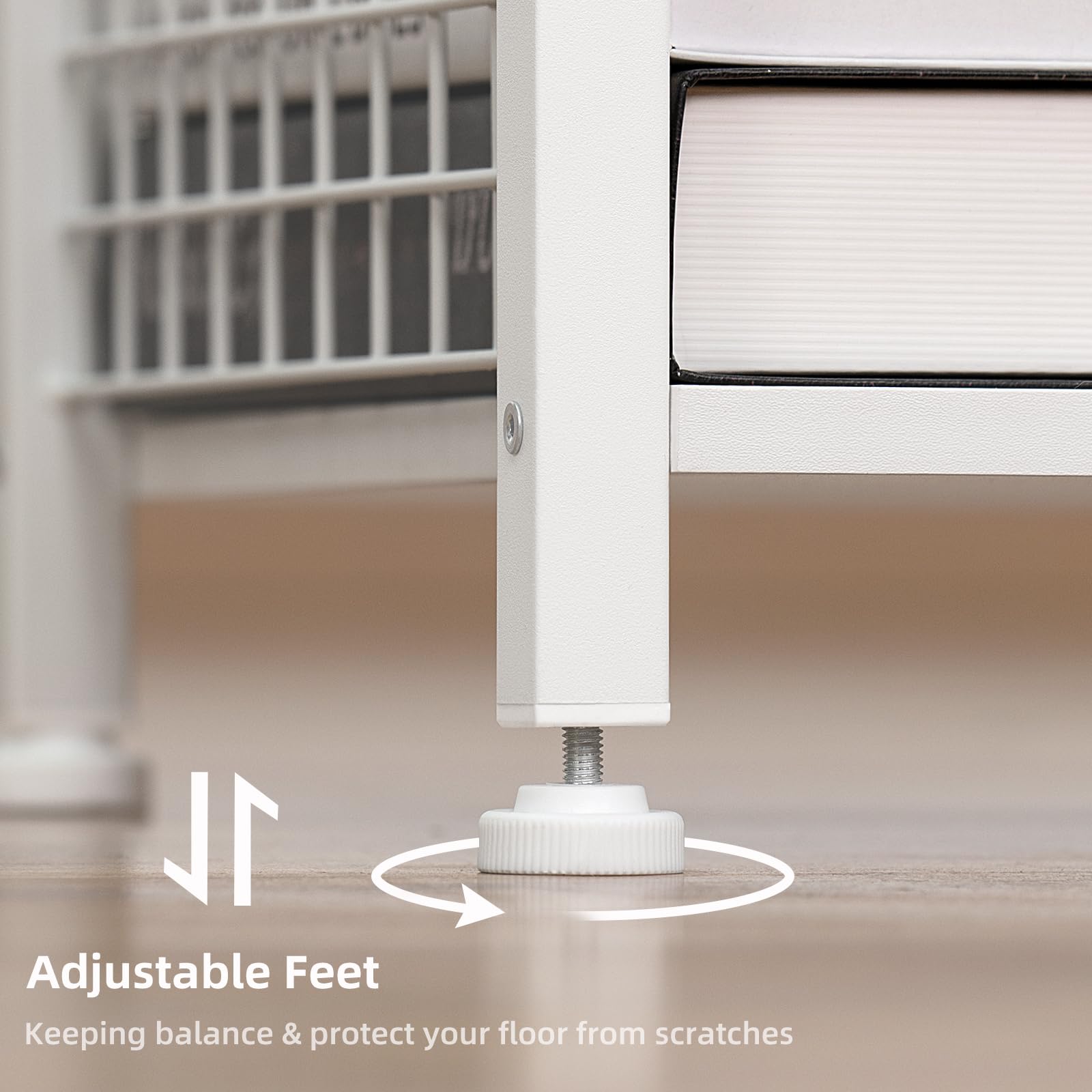Lerliuo White Printer Stand with Fabric Drawer, 3 Tier Industrial Side Table, Modern Small Printer Desk Holder with Storage Shelf,Multi-Functional Bedside Tables for Home Office Fax Machine Scanner