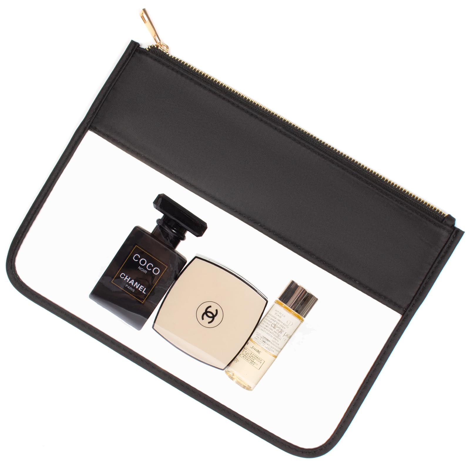 LETGO Clear Makeup Bags, TSA Approved Toiletry Bag with Zipper, Clear Makeup Organizer Fit Carry-on Travel Essentials,Car Essentials for Women Men (C-Black)