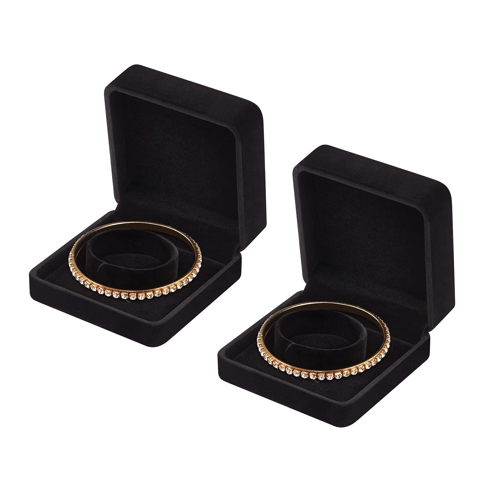LETURE 2 Pieces Velvet Bracelet Boxes for Jewelry Gift, Classic Jewelry Box Storage Case Organizer Holder for Wedding, Engagement, Proposal, Birthday and Anniversary (Black)