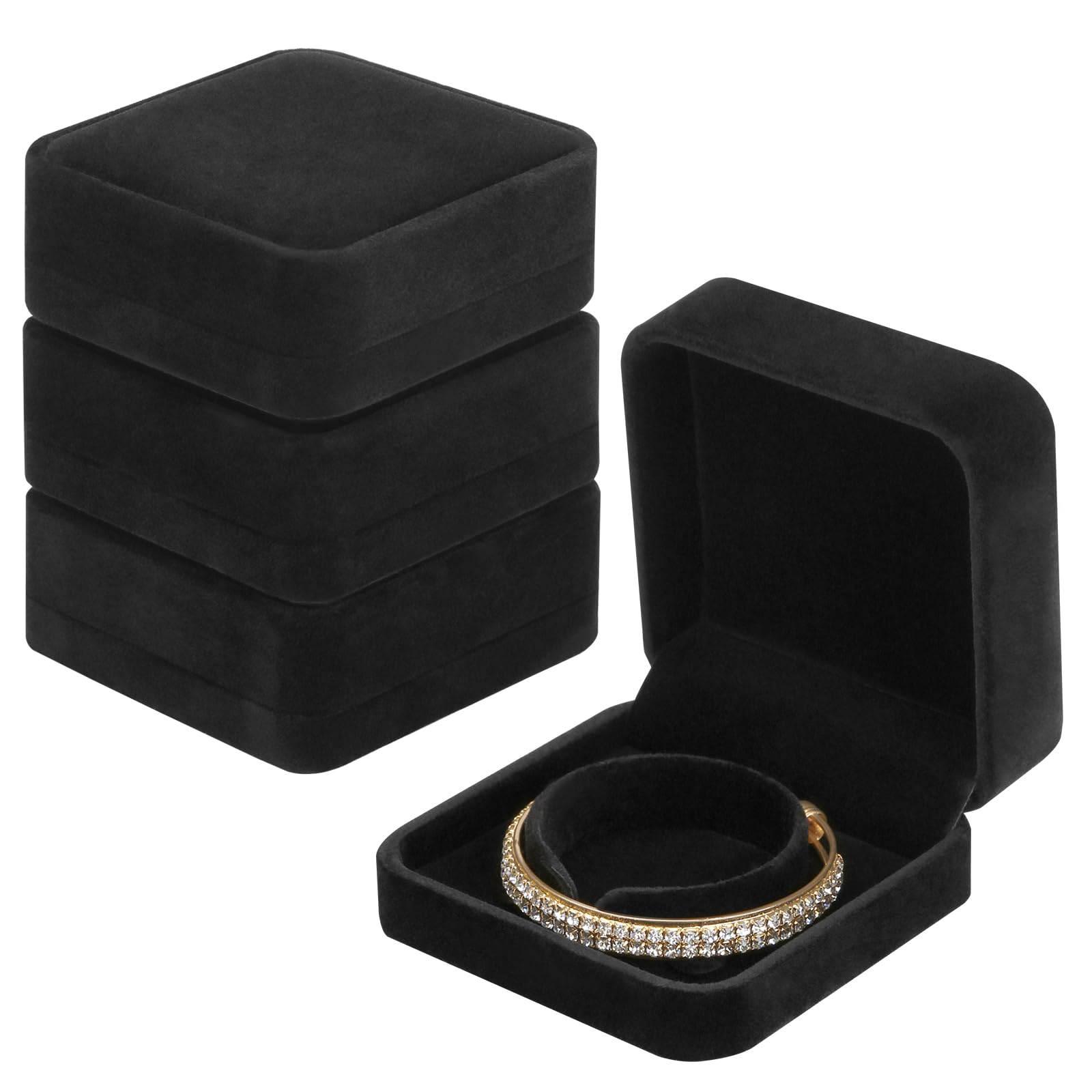 LETURE 4 Pieces Classic Velvet Bracelet Bangle Pendant Necklace Gift Box, Travel Jewelry Box Display Storage Case for Gift, Wedding, Engagement, Proposal, Birthday (Bracelet STYLE 1-4PCS)