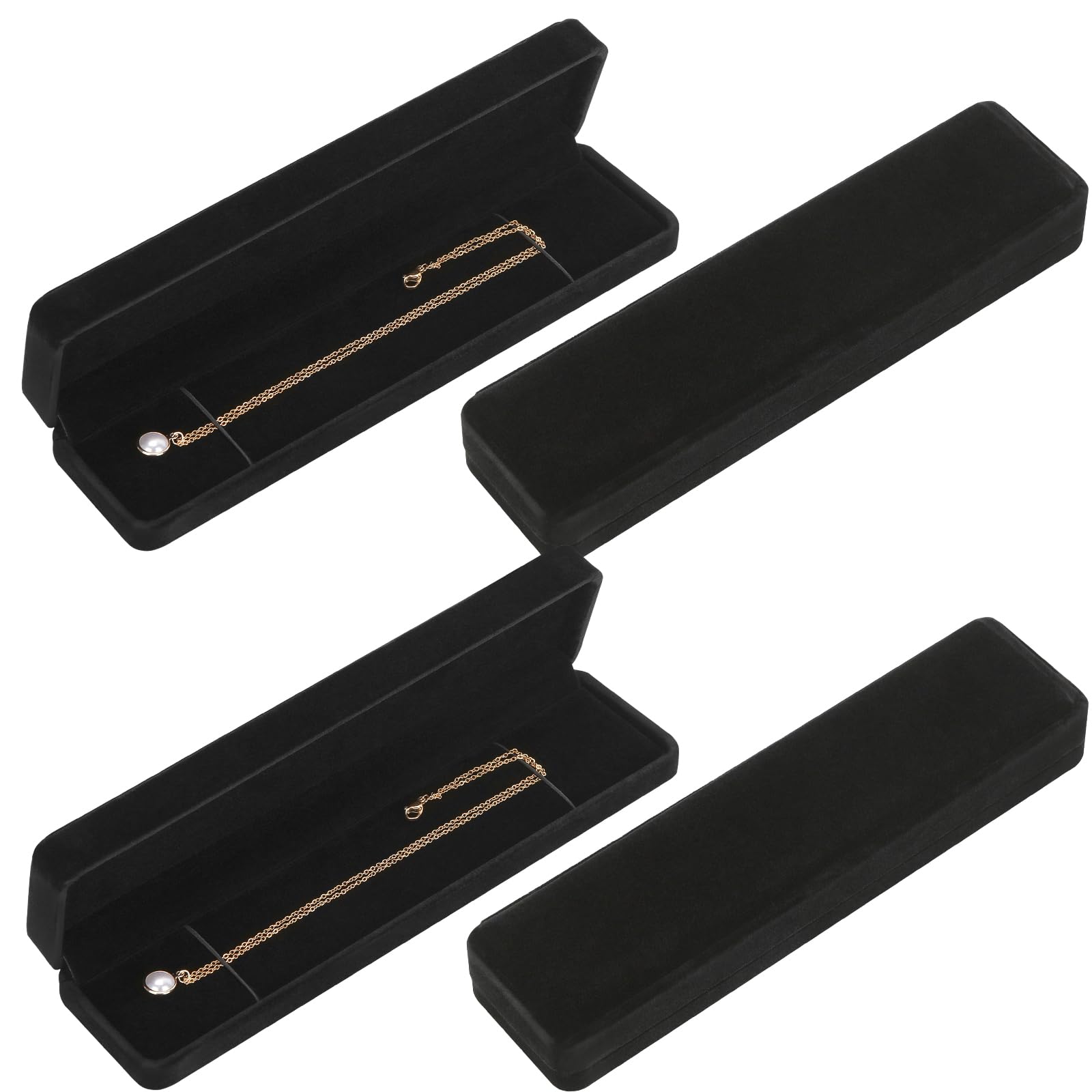 LETURE 4 Pieces Velvet Bracelet Necklace Pendant Jewelry Box, Small Long Jewelry Watch Gift Box for Proposal, Wedding, Engagement, Christmas (BLACK-4PCS)