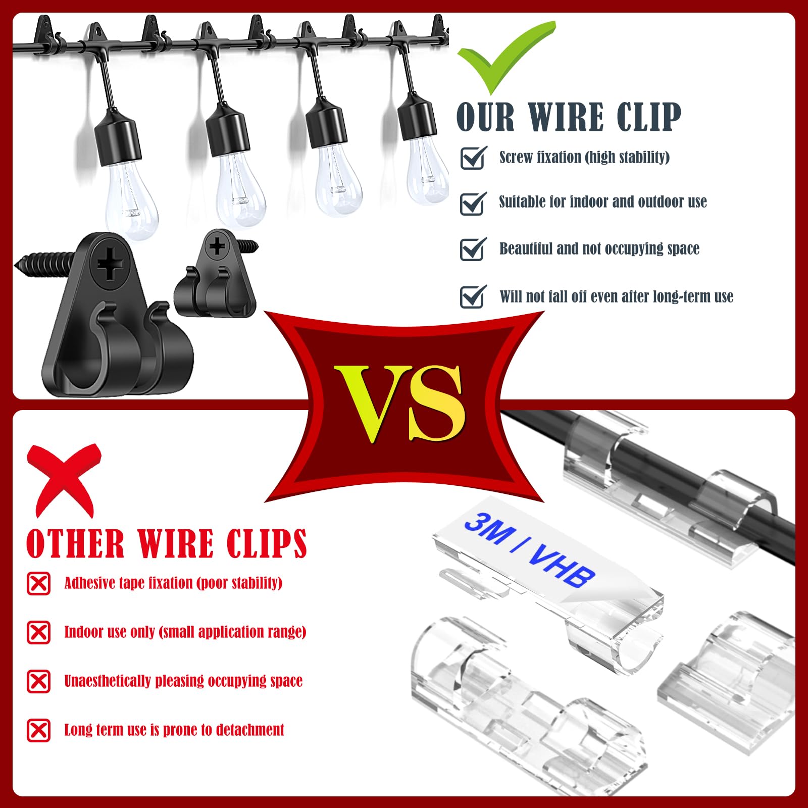 - Widely used: Suitable for outdoor string lights, LED string lights, Edison bulb string lights, patio lights, holiday lights, solar string lights, Christmas decoration, Patrick's Day lights, LED rope lights. Hanging your lights in gutters, patios, balconies, fences, cages, decks, roof eaves, and much more!