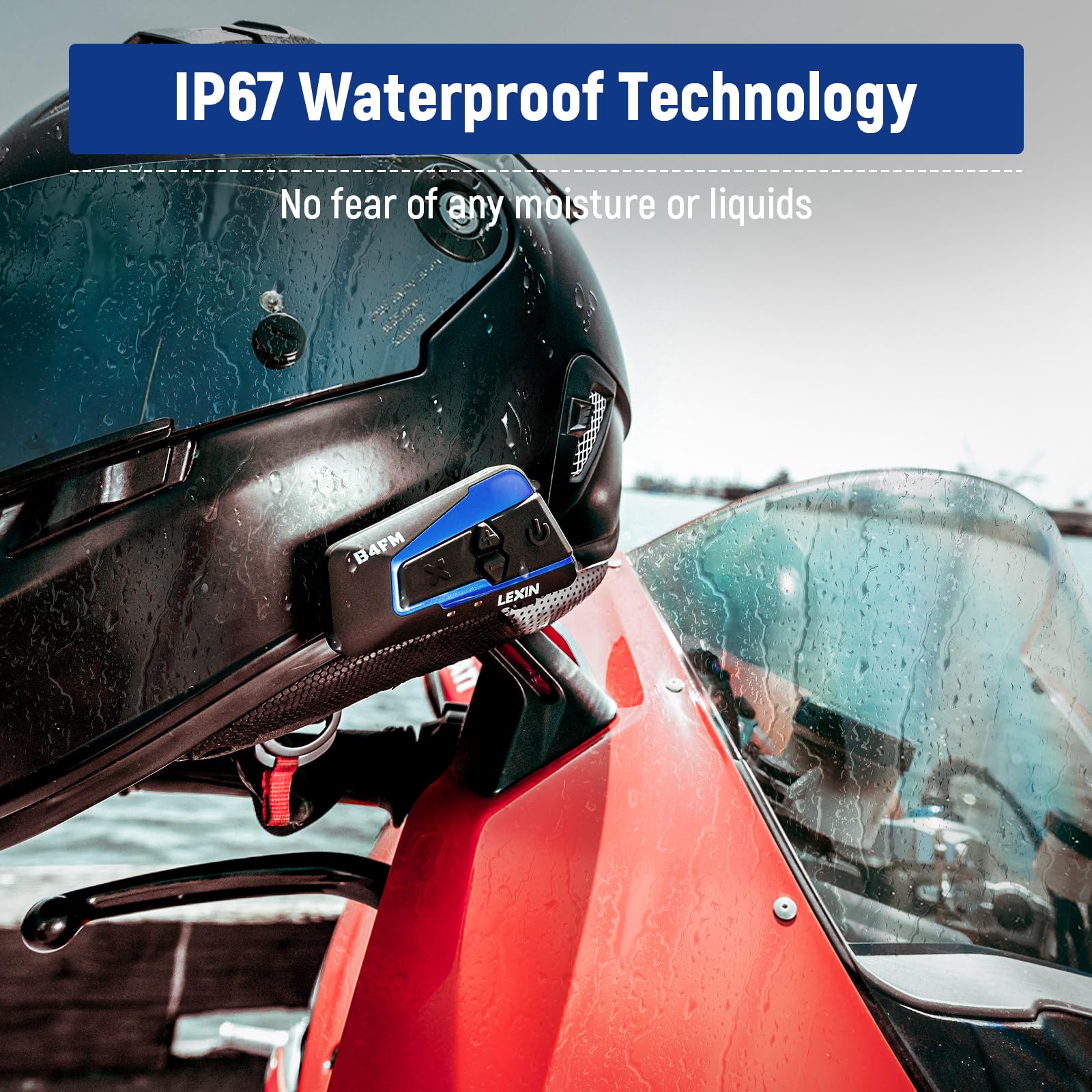 LEXIN B4FM Motorcycle Bluetooth Headset, 10 Riders Helmet Bluetooth Intercom, Universal IP67 Communication Systems with Music Sharing, Noise Cancellation, FM Radio, Fit for Snowmobile, 1 Pack