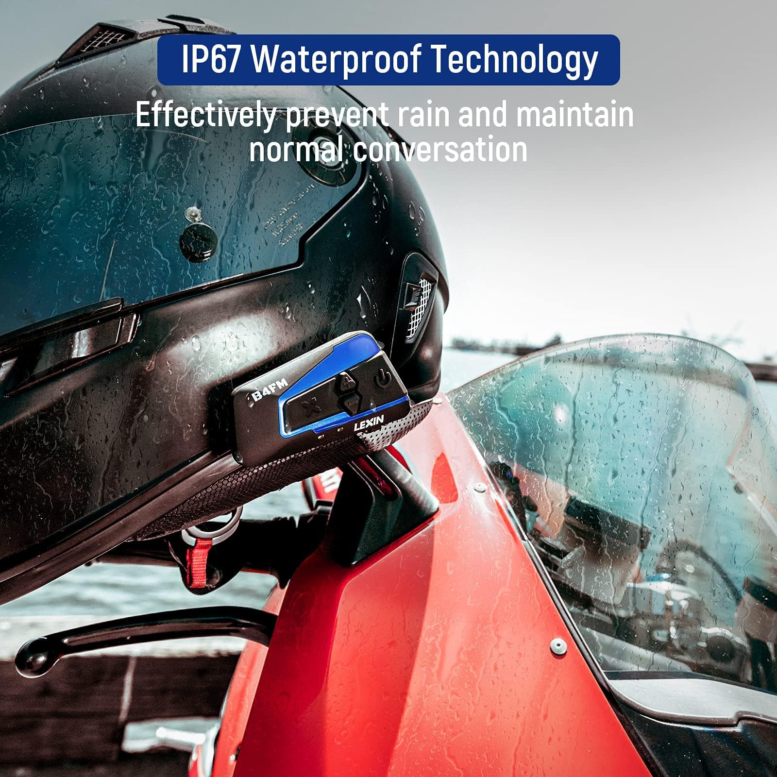 LEXIN B4FM Motorcycle Bluetooth Headset, 10 Riders Helmet Bluetooth Intercom, Universal IP67 Communication Systems with Music Sharing, Noise Cancellation, FM Radio, Fit for Snowmobile, 2 Pack