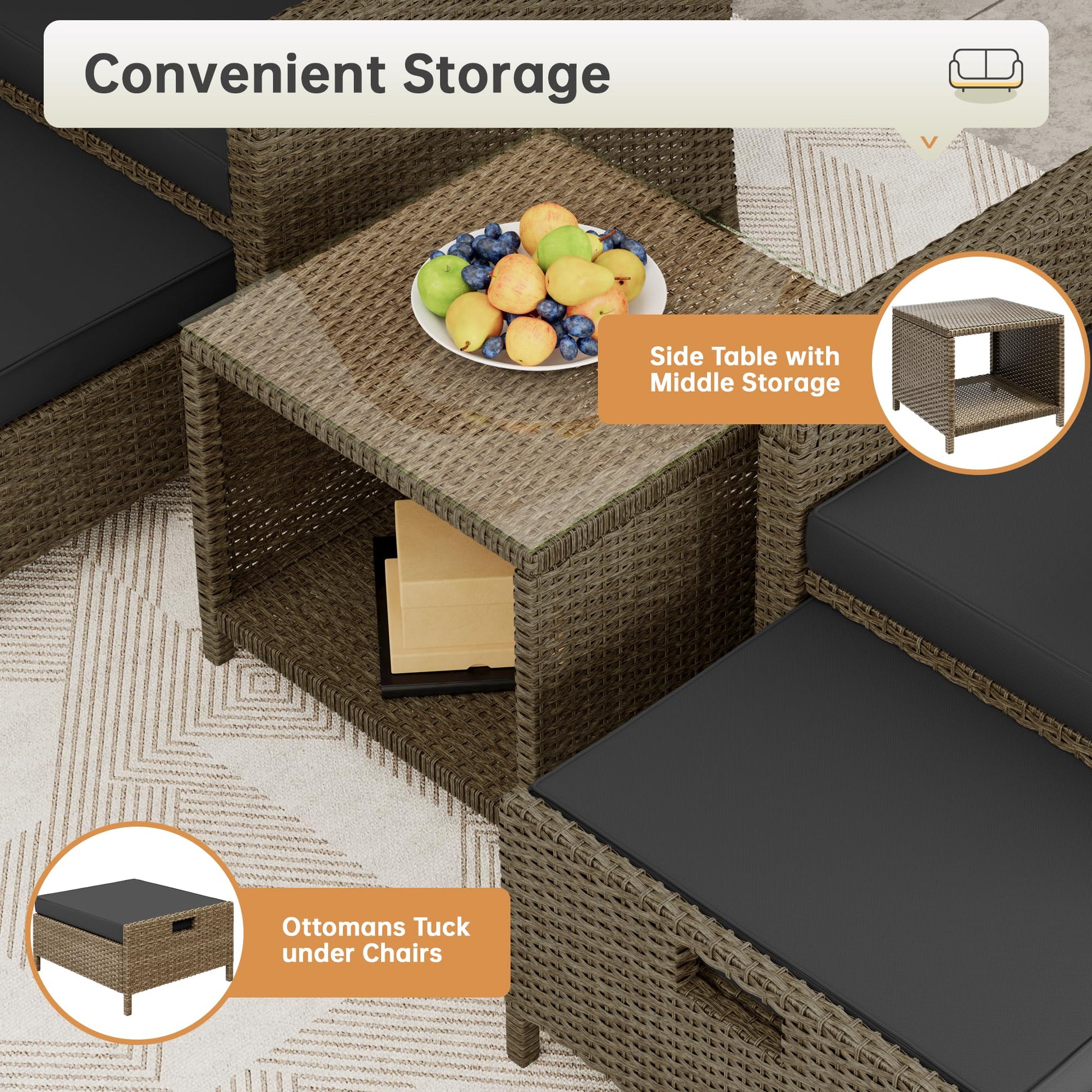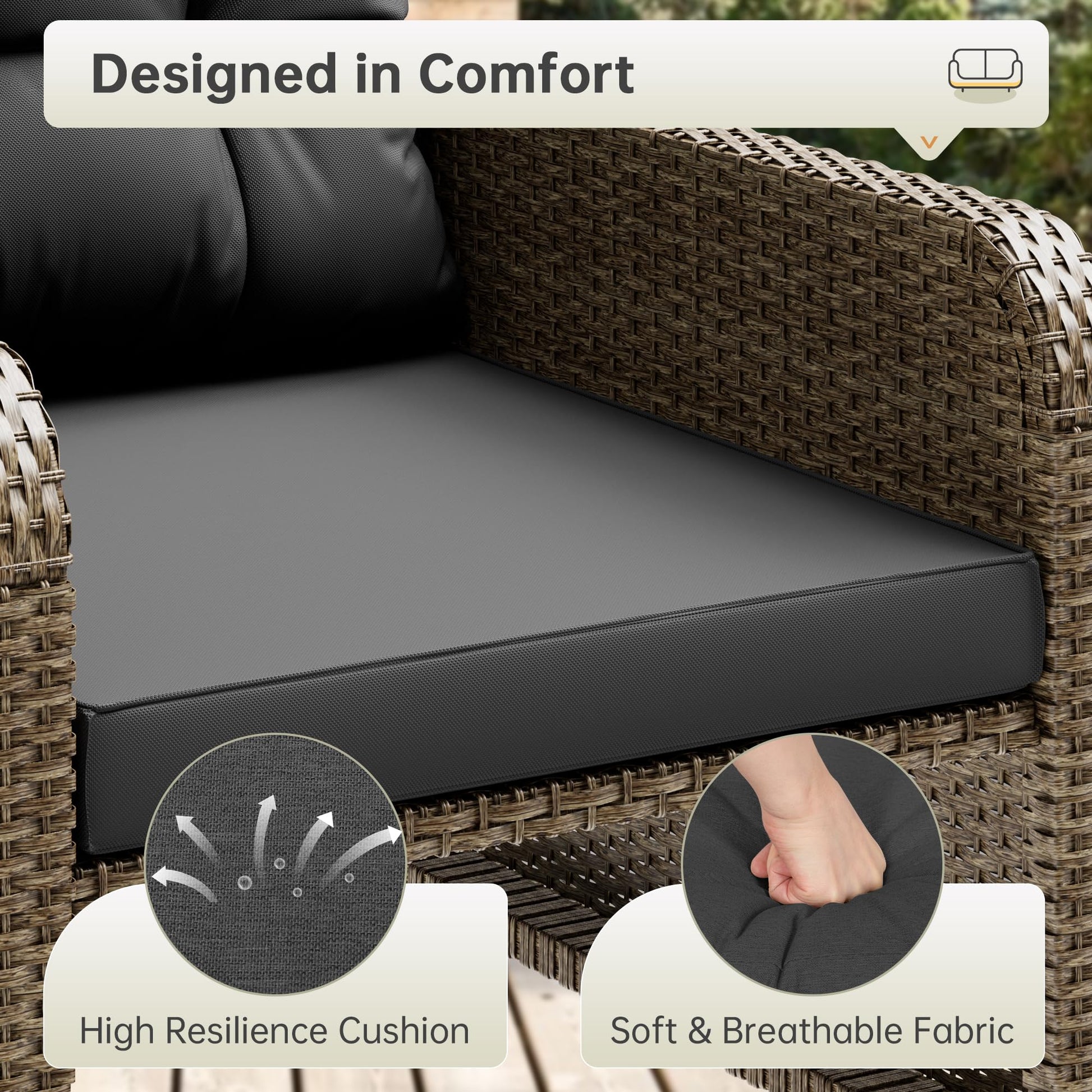 - 【Easy to assemble】Wicker patio furniture is quick and easy to install. The coffee table can hold 33.07 LB, the small stirrups can hold 55.12 LB, a single seat can hold 352.74 LB, In order to prevent the product from being damaged due to excessive weight, we will ship the product in two boxes.