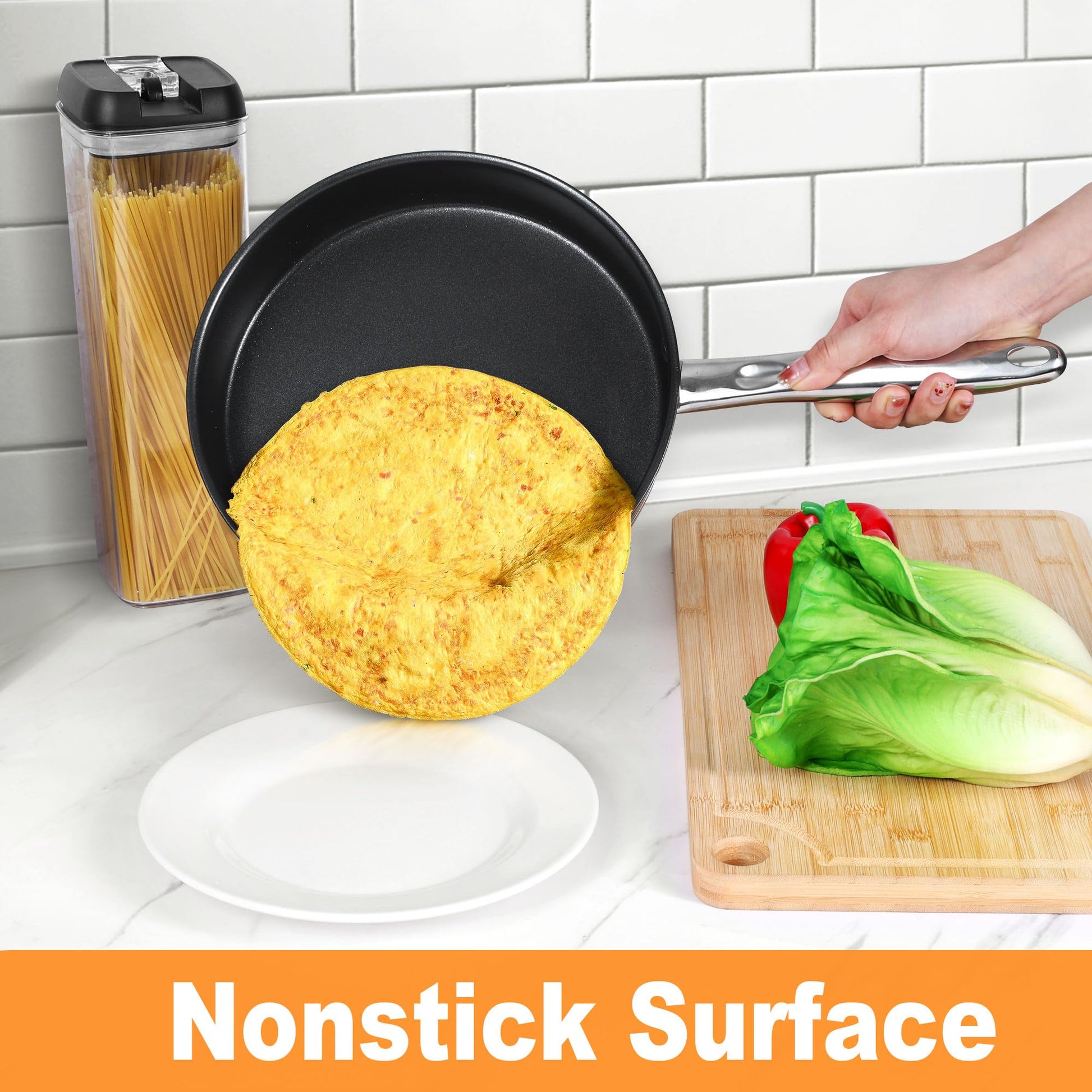 - Easy to clean: frying pans and saute pan are featuring in nonstick coating, offer exceptional non-stick performance, require less oil or butter for daily cooking meals, which is indeed beneficial to keep a balanced and healthy diet, easy food release give you a hassle-free and more enjoyable at-home cooking experience, you can wipe the mess by hand or place them in the dishwasher for an effortless cleanup