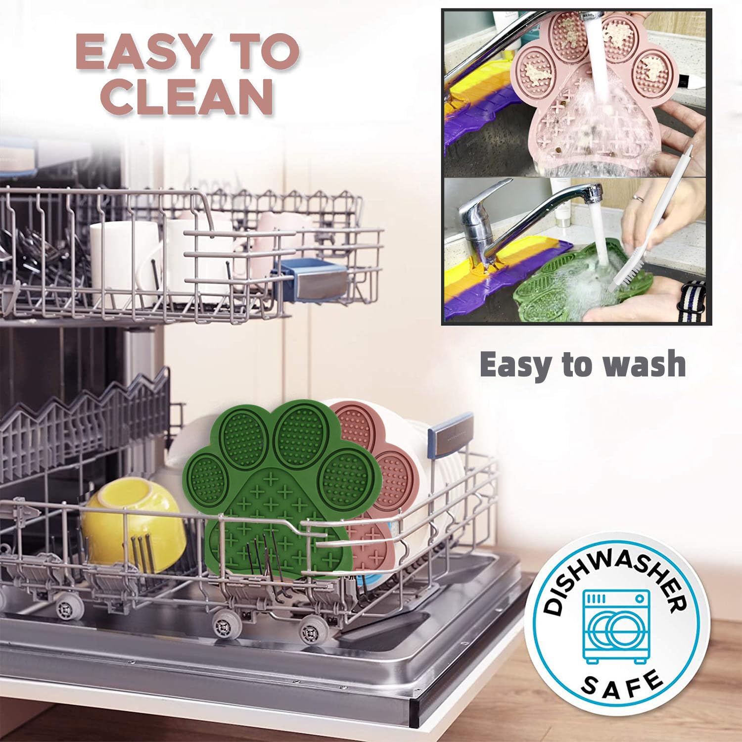 - Food Grade, Freezer and Dishwasher Safe : Our dog peanut butter lick pad is made of 100% BPA free, food grade silicone. This silicone lick pad is safe for your beloved friend's health. It is also freezer safe, easy to clean, and dishwasher safe.