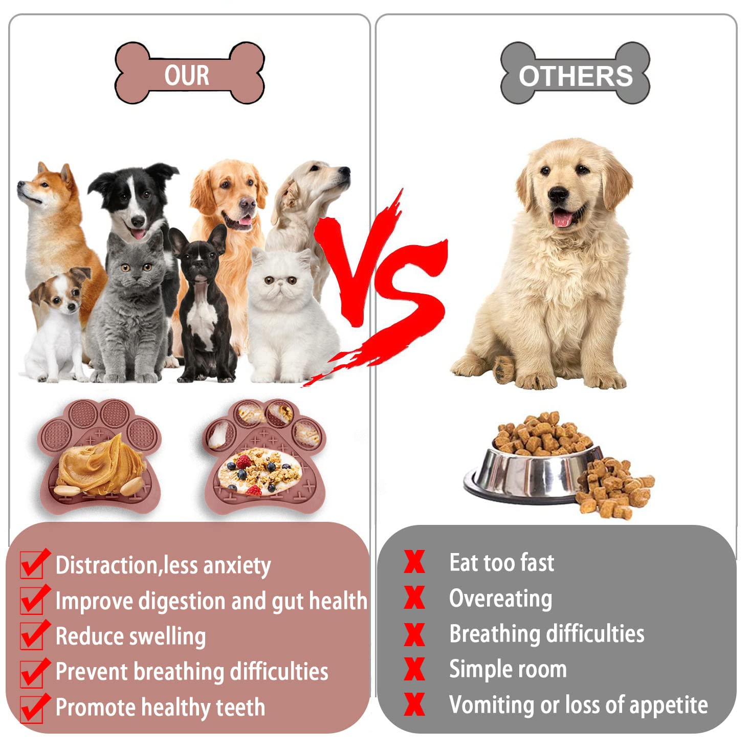 - Reduces Destructive Behavior & Improves Digestion : Dog licking mats are a pet boredom buster, inhibiting destructive behavior, keeping pets busy and relieving separation anxiety. Dog licking pads can also reduce the rate at which pets eat and effectively prolong eating time.
