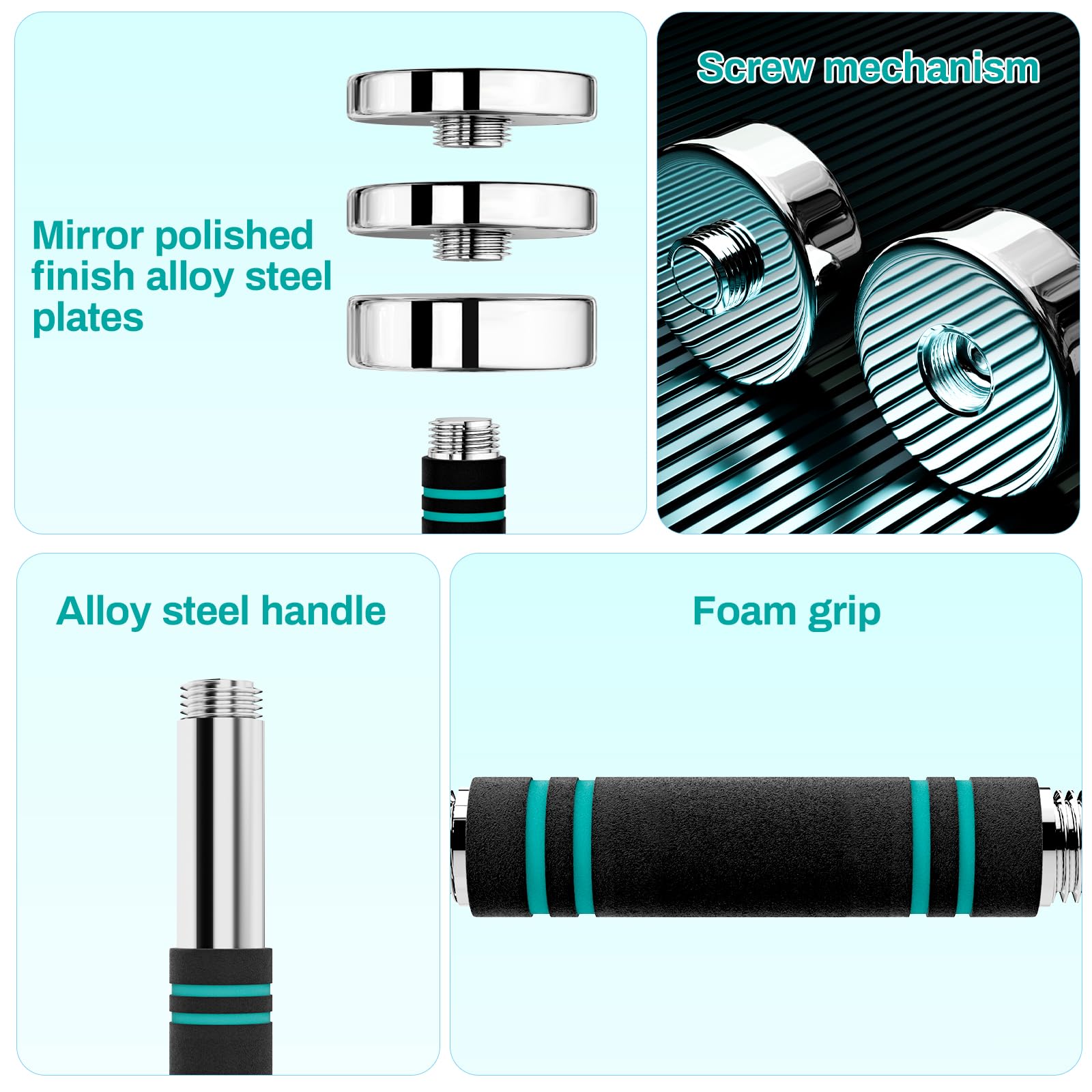 - Unique and Firm Design Dumbbells: The special thread fixing design is stronger and safer than traditional nuts. There is no need to worry about the dumbbells falling and injuring yourself while using the dumbbell weights.