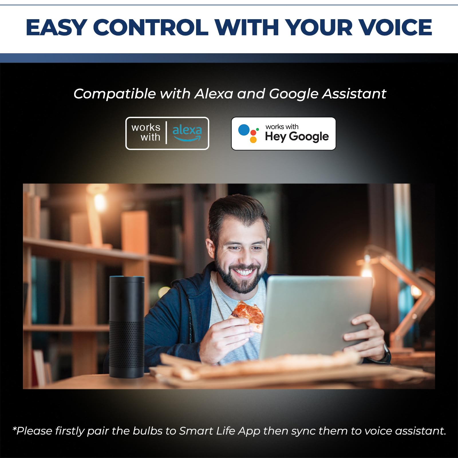 - Voice Control: After pairing the smart bulbs with the Smart Life App, these smart candelabra LED bulbs can be compatible with Alexa and Google Assistant by syncing them; Enjoy the smart life with voice commands then