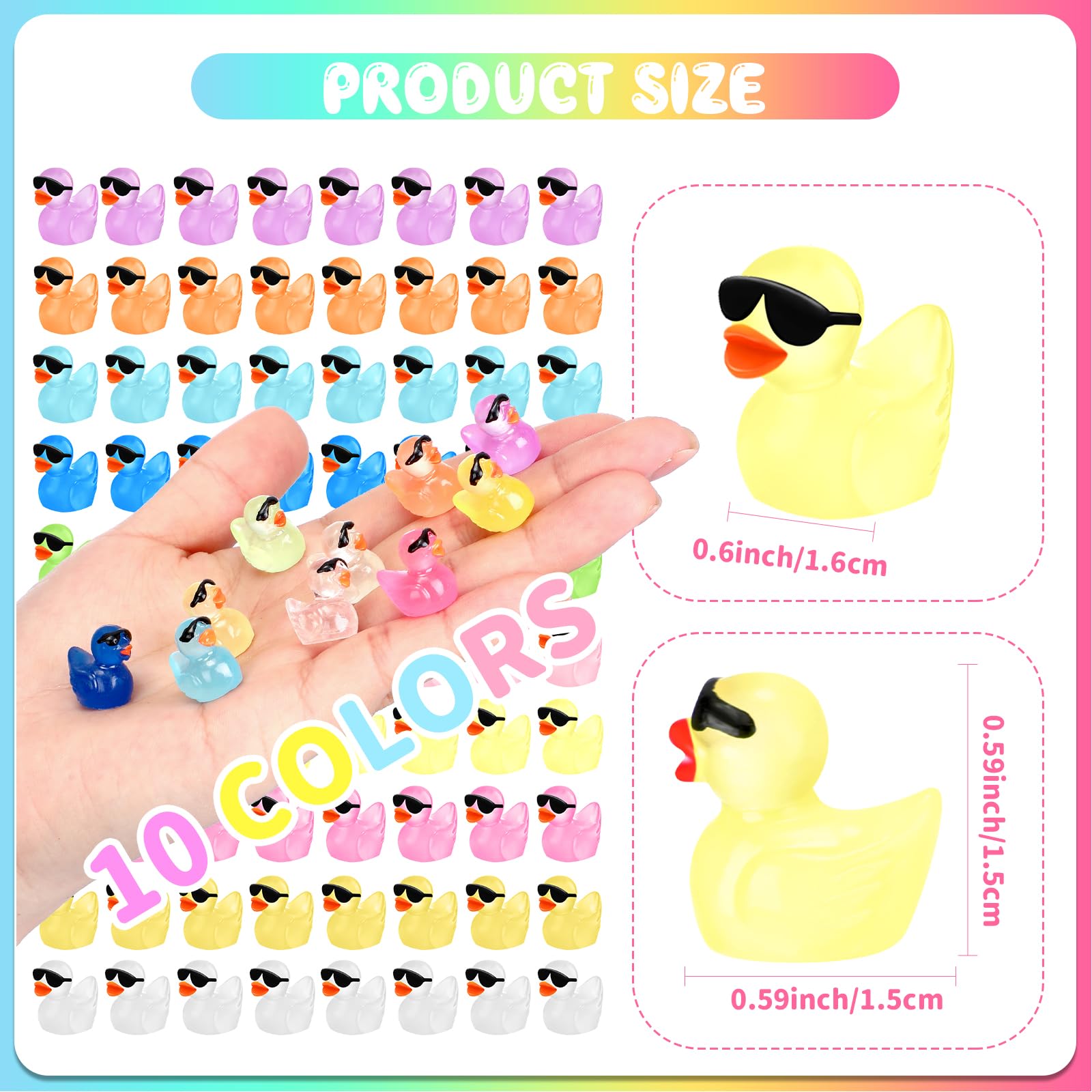- Luminous Ducks: these luminous mini resin ducks bulk come in a pack of 150, enough to fulfill various decorating purposes; Featuring 10 vibrant colors and wearing adorable sunglasses, making them a festive addition to any setting such as a dollhouse, fairy miniature garden, fish tank, or even a landscape aquarium; The diverse colors and quantity meet the increasing demand for cute and fun decorations