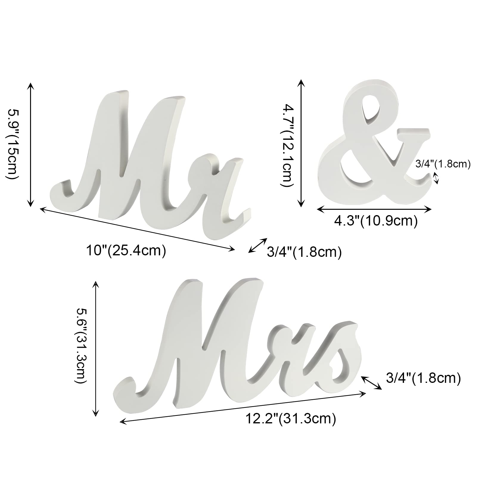 - ❣【Perfect Size】'Mr' size: 10 x 5.9x 3/4 inch, 'Mrs' size: 12.2 x 5.9 x 3/4 inch, '&' size: 4.3 x 4.7 x 3/4 inch, create an elegance and romantic atmosphere while using.