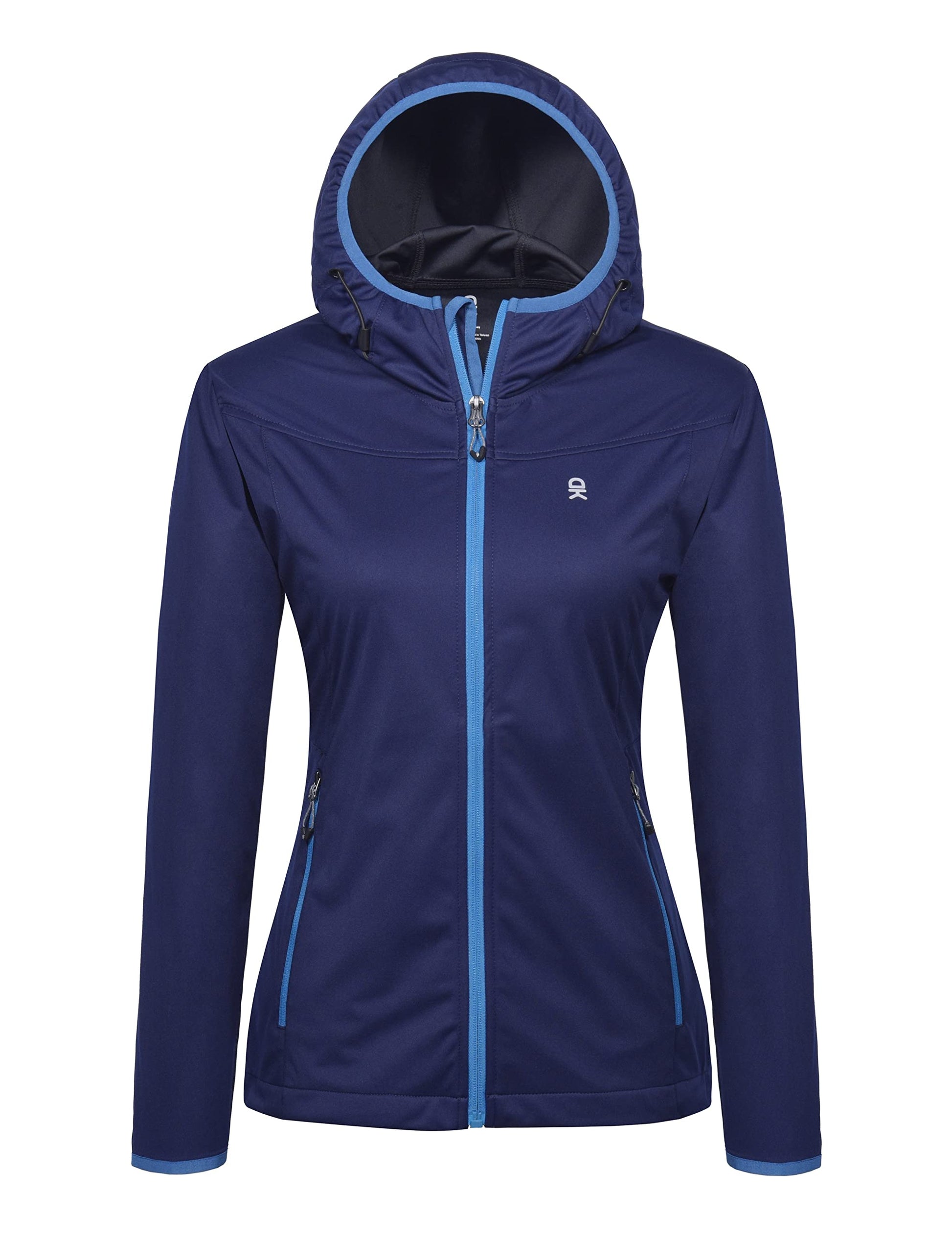 Little Donkey Andy Women's Lightweight Hooded Softshell Jacket for Running Travel Hiking, Windproof, Water Repellent Dark Blue Size S