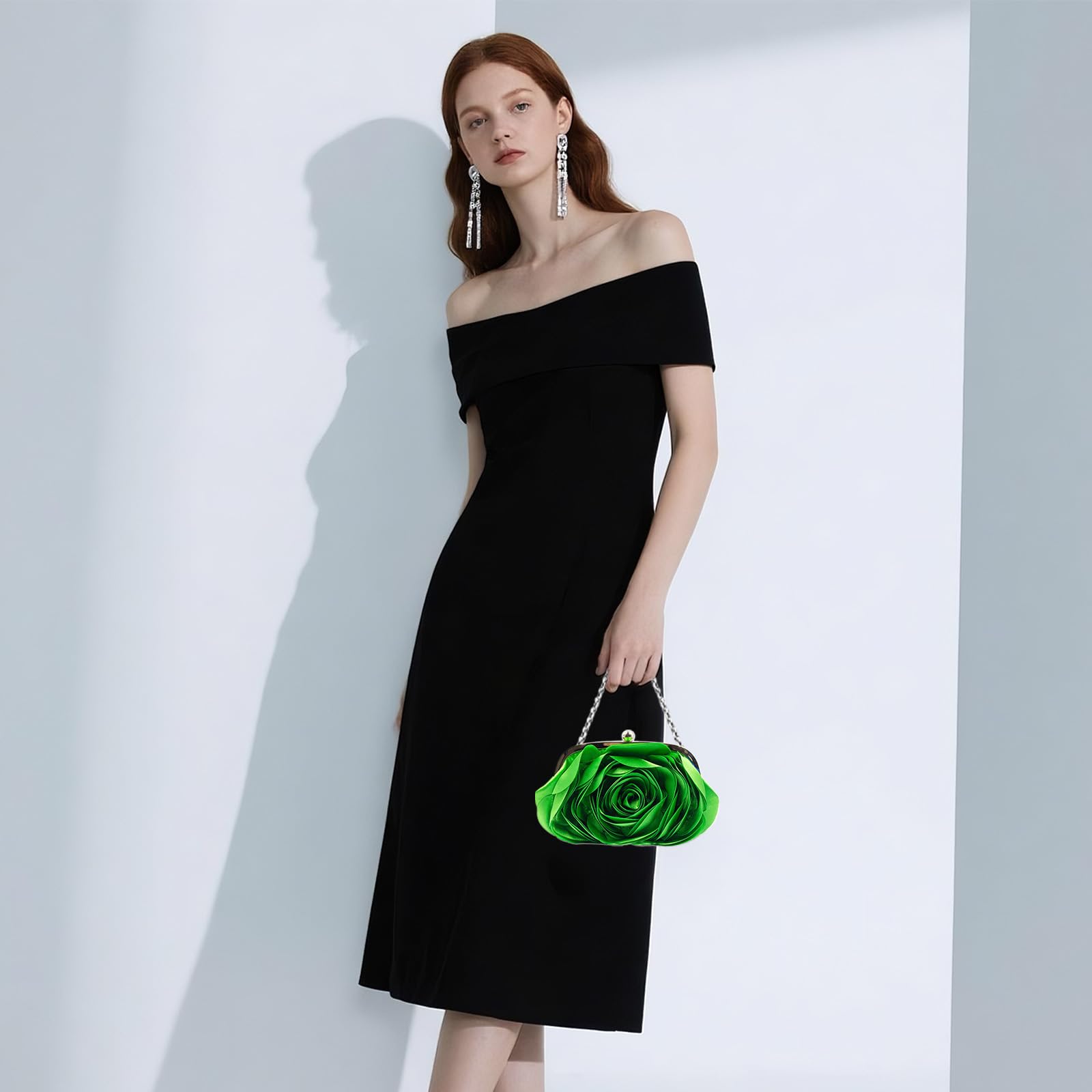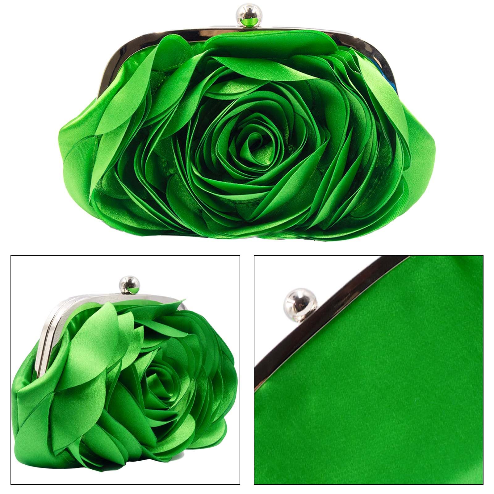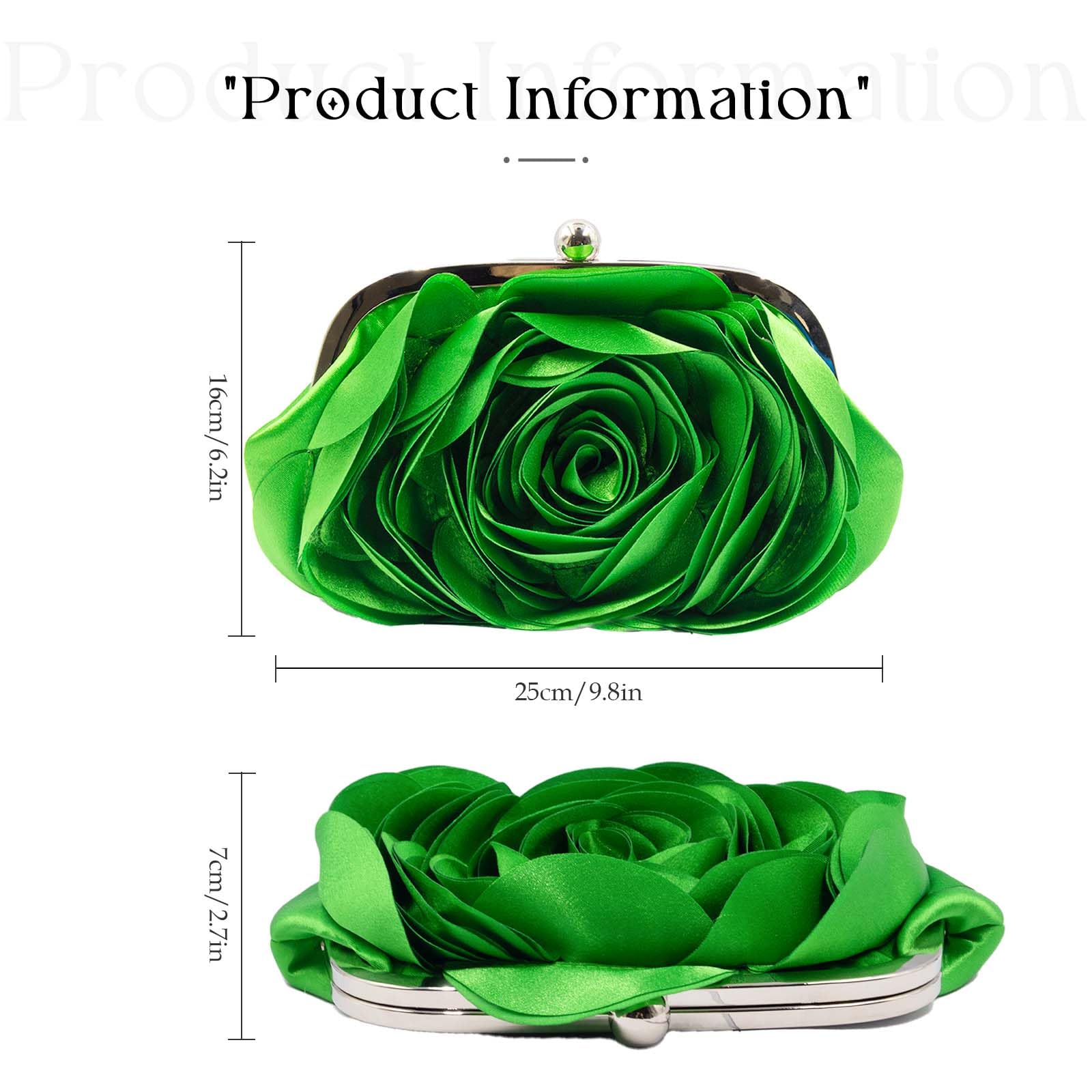 Little Floral Clutch Purse for Women - Elegant Rose Petal Evening Bag with Detachable Chain for Wedding, Gala, Prom, Green