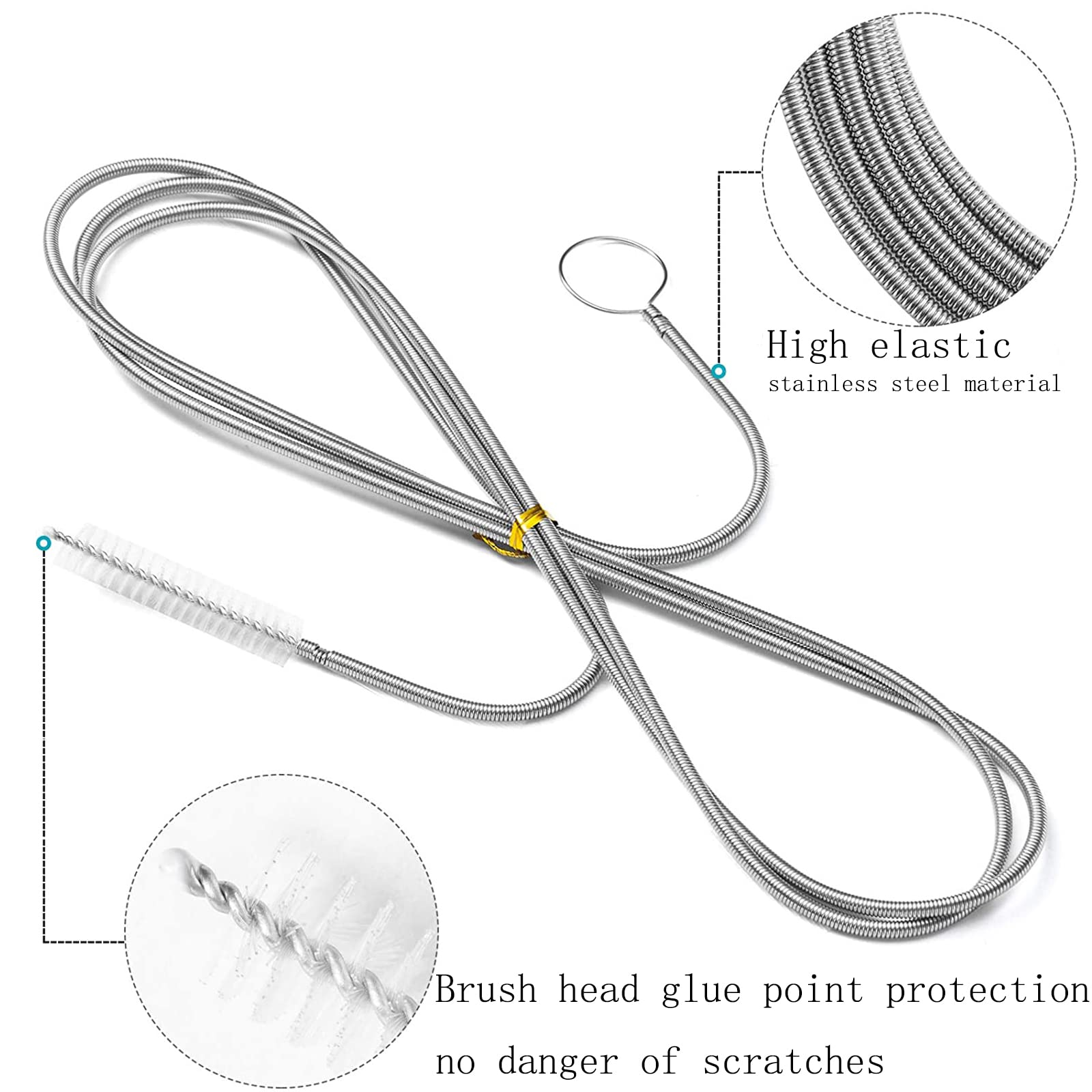 - The nylon bristles long pipe cleaner tubular-shaped brush on one end and loop end on other,the hand ring is designed for Easy Extraction, no worries about cleaners falling into drains.
