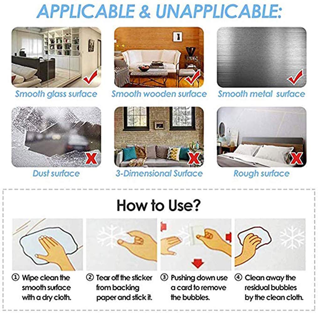 - ★ Where to use it?-These are great for home windows, glass storm doors, mirrors or any other smooth surface.We do not recommend using them in car windows as the heat may cause them to shrunk or peel.