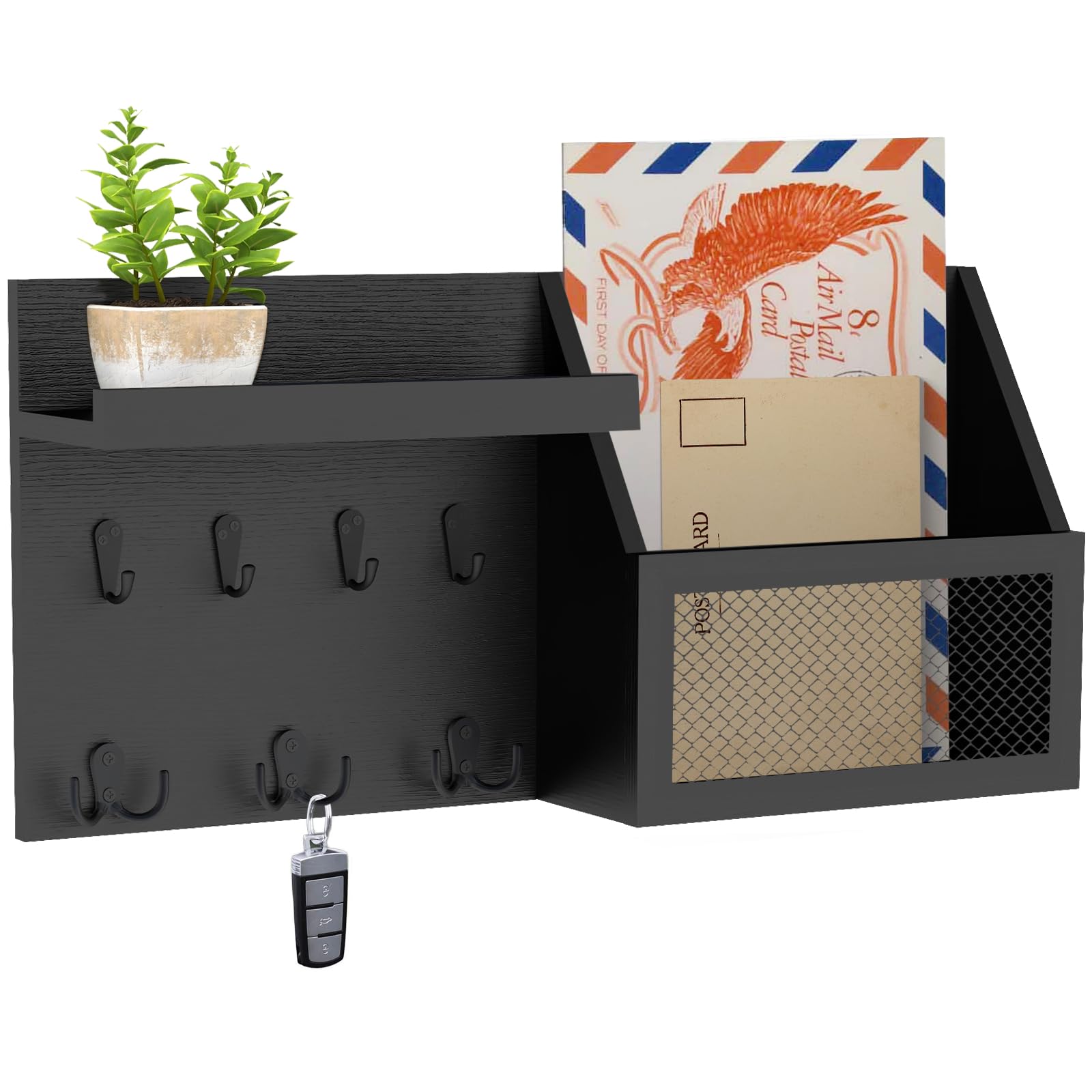 - Wall Mounted Multi-function Key Holder: Designed with a mail organizer, floating shelf, and 7 durable