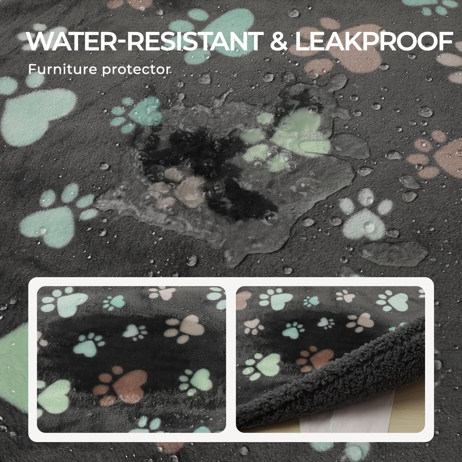 Luciphia Waterproof Pet Blankets for Couch Sofa Bed Cover Cat Liquid Pee Proof Washable Soft Fluffy Large Dog Blanket Reversible Furniture Protection Puppy Grey Paw Thicken Small(40" x 28")