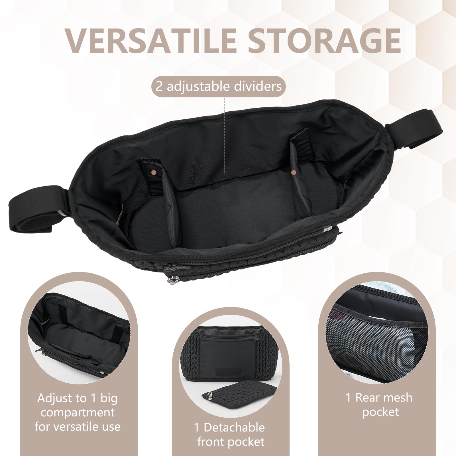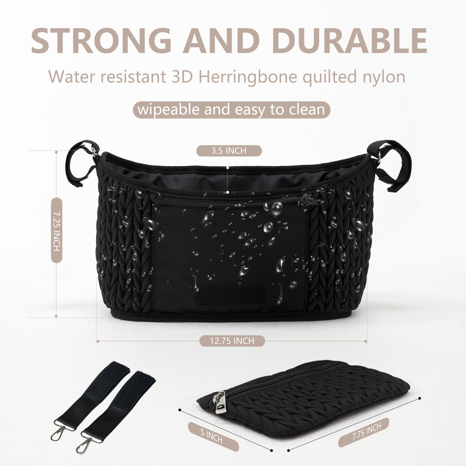 - * Stylish and Functional - This attractive stroller organizer features unique 3D herringbone quilting, adding a touch of elegance to your daily outings with your little one. it's made of durable, water resistant nylon.