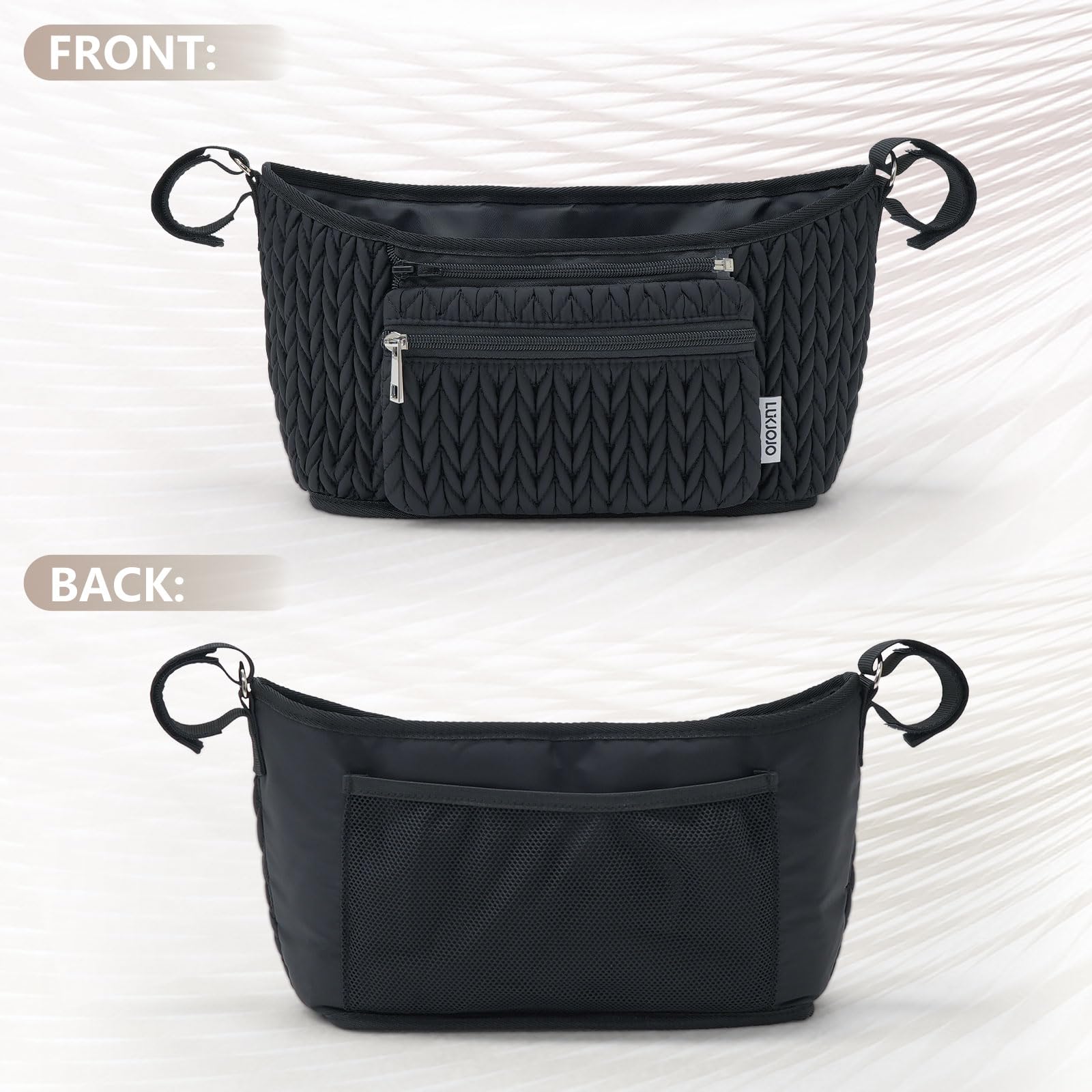 LUKJOJO Stroller Organizer - Stylish 3D Herringbone Quilting Nylon, Universal Fit, Detachable Bag, Adjustable Multi-Storage for Baby Essentials