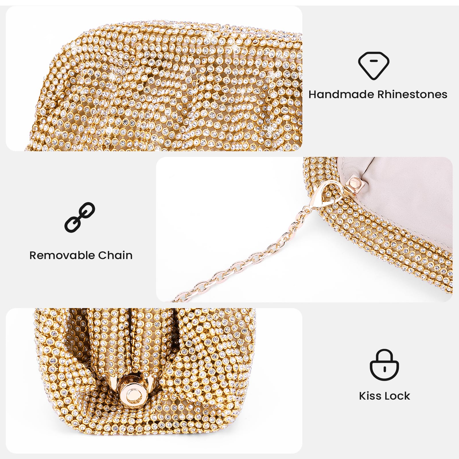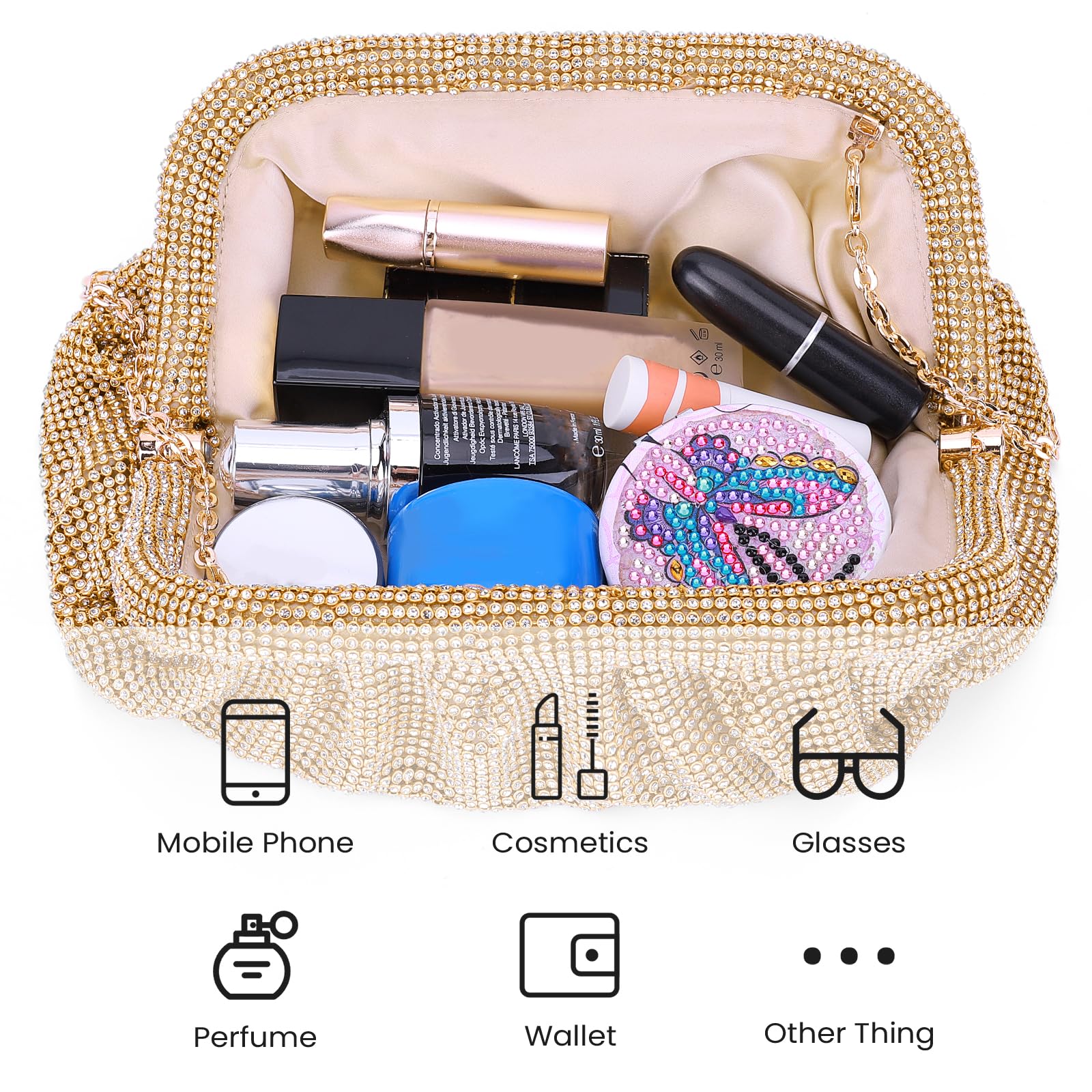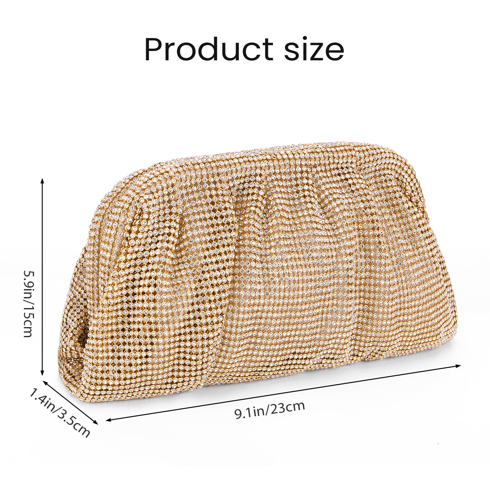 - 【ELEGANT LUXURY】The rhinestone clutch's cloud shape is adorned with thousands of sparkling crystals, featuring handcrafted pleats that enhance its unique charm for a dazzling night out.
