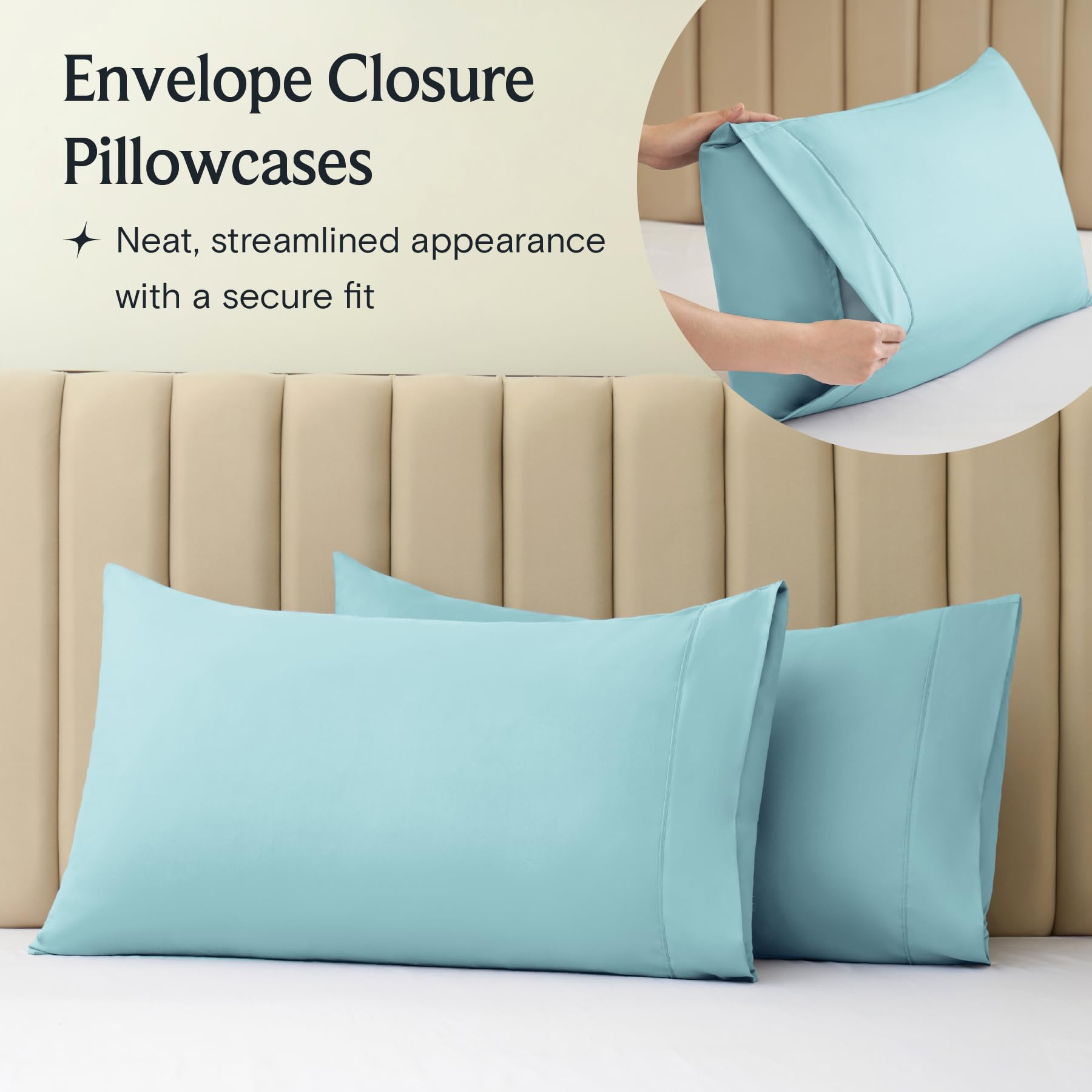 LuxClub 4 PC Queen Sheet Set, Queen Size, Deep Pockets 18" Wrinkle Free Cooling Bed Sheets Machine Washable Hotel Bedding Silky Soft - Aqua Queen