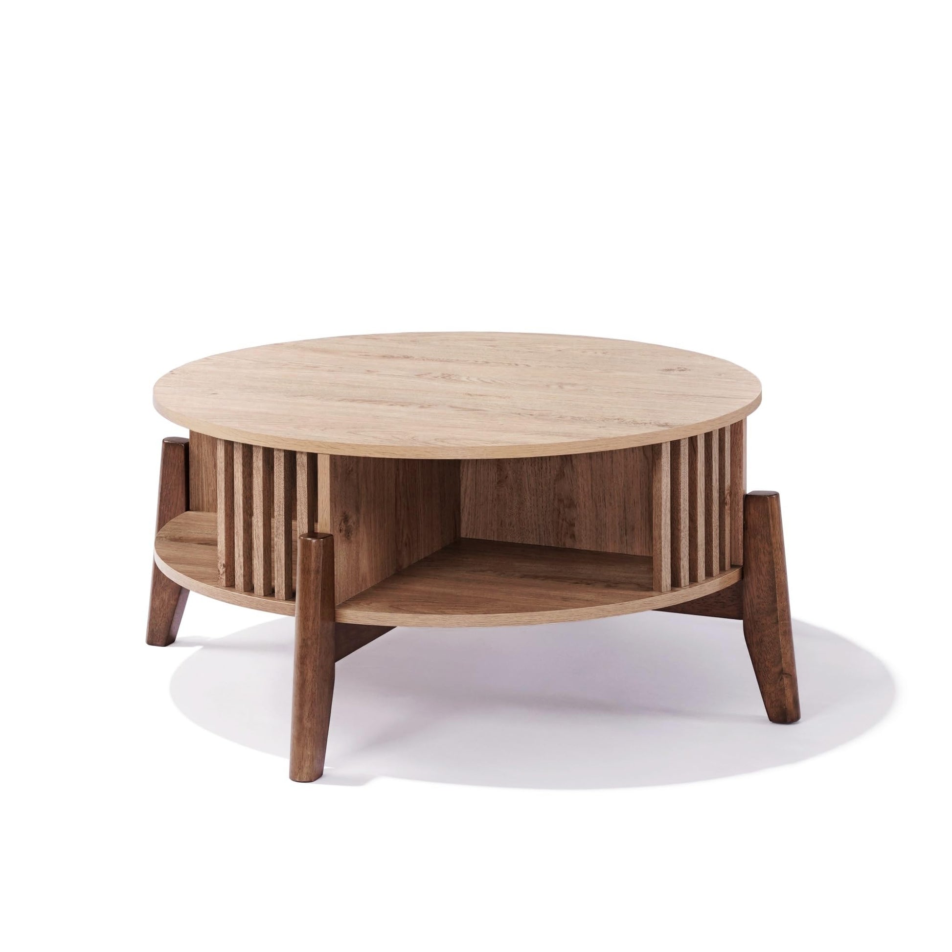 - 2-Tier Unique Mid-Century Modern Coffee Table: Measuring 31.5' Dia and 15.7' H, the large wood tabletop provides plenty of space for books, cups, snacks, and decor items. The open bottom shelf offers extra storage for remotes and magazines, keeping your living room organized.