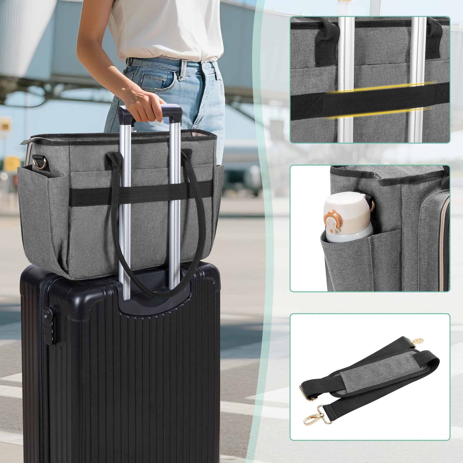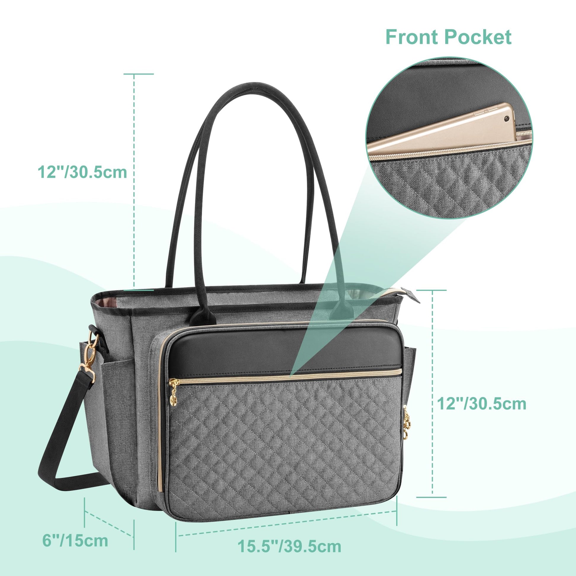 LUXJA Teacher Tote Bag with Accordion File Pocket, Teacher Bag for Women with 15.6 Inch Laptop Compartment, Gray