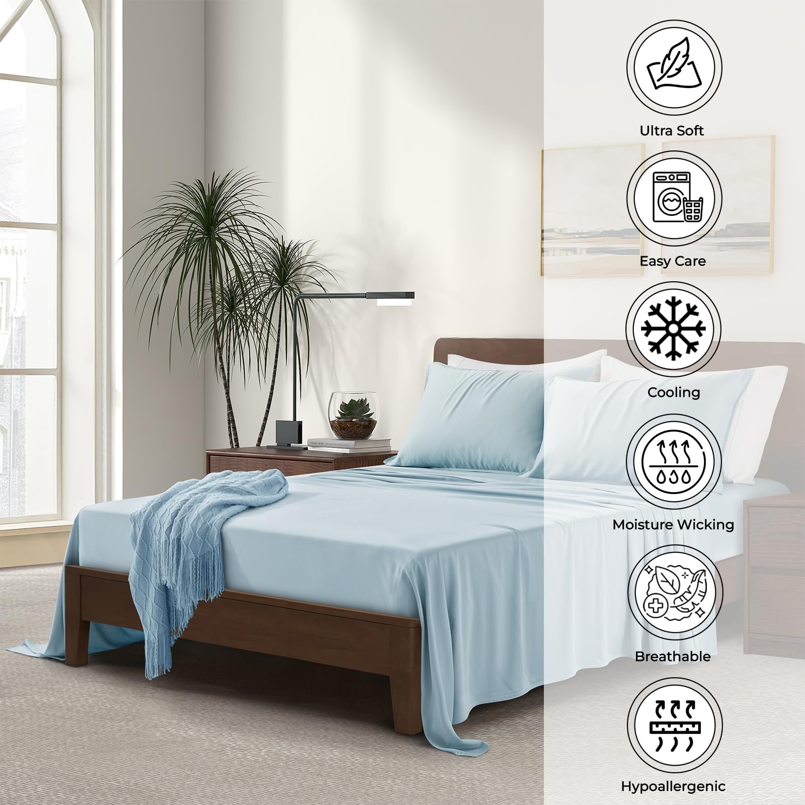 Luxury Bamboo Market |King Envelope Pillowcase Set | 100% Viscose Made from Bamboo | Organically Grown | Ultra Soft | Cooling | 2pcs [Spa Blue]