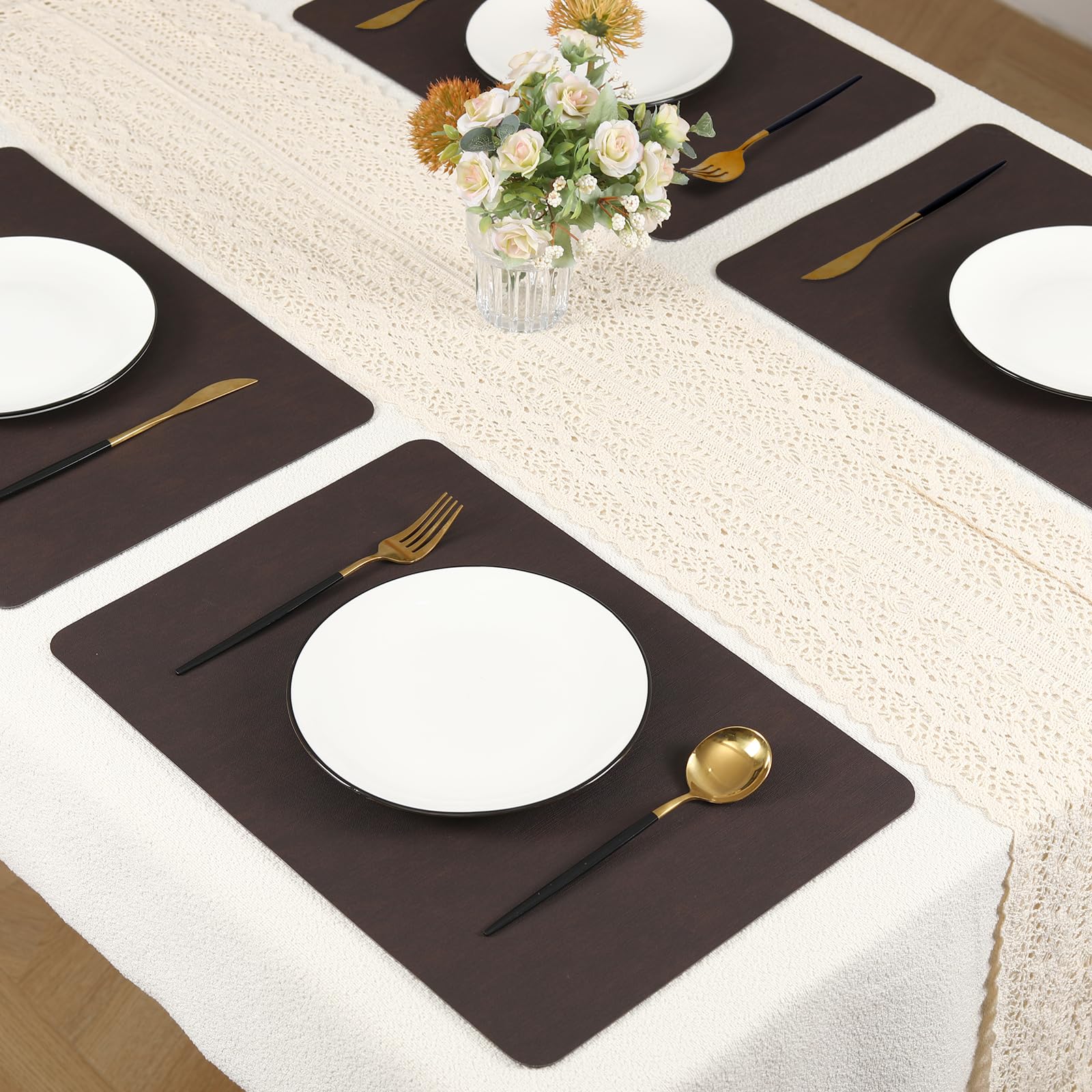 Luxury Brown Faux Leather Placemats Set of 6 – Heat Resistant, Waterproof, Non-Slip, Wipeable, Stain-Resistant Table Mats – Modern Dining Table Décor, Easy to Clean & Washable
