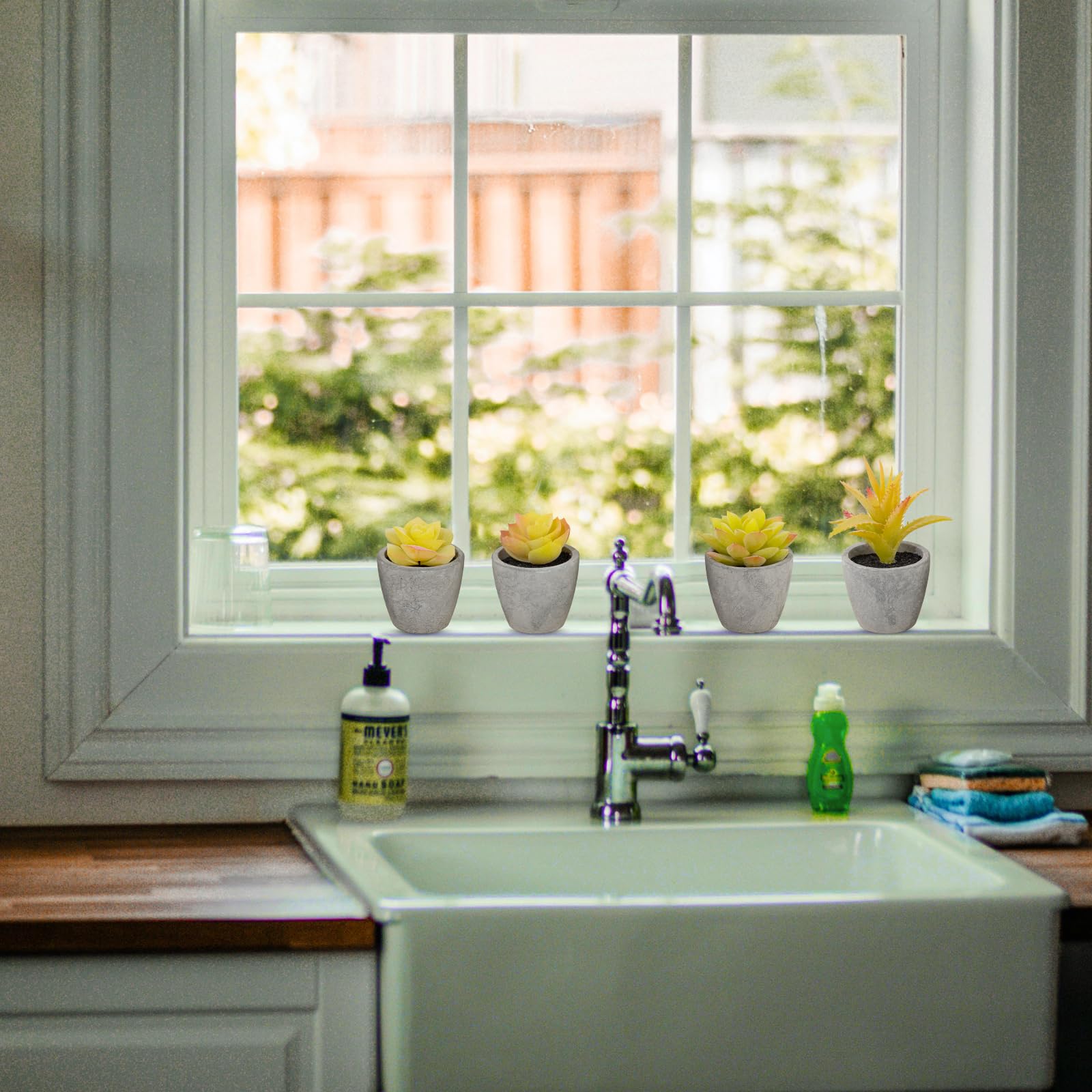 LUZOGA Set of 4 Yellow Fake Succulents, Artificial Small Succulents Plants, Mini Home Decor Small Fake Plants Decor for Office Table Bedroom Kitchen Desk Decor Bathroom Shelf Yellow Decor