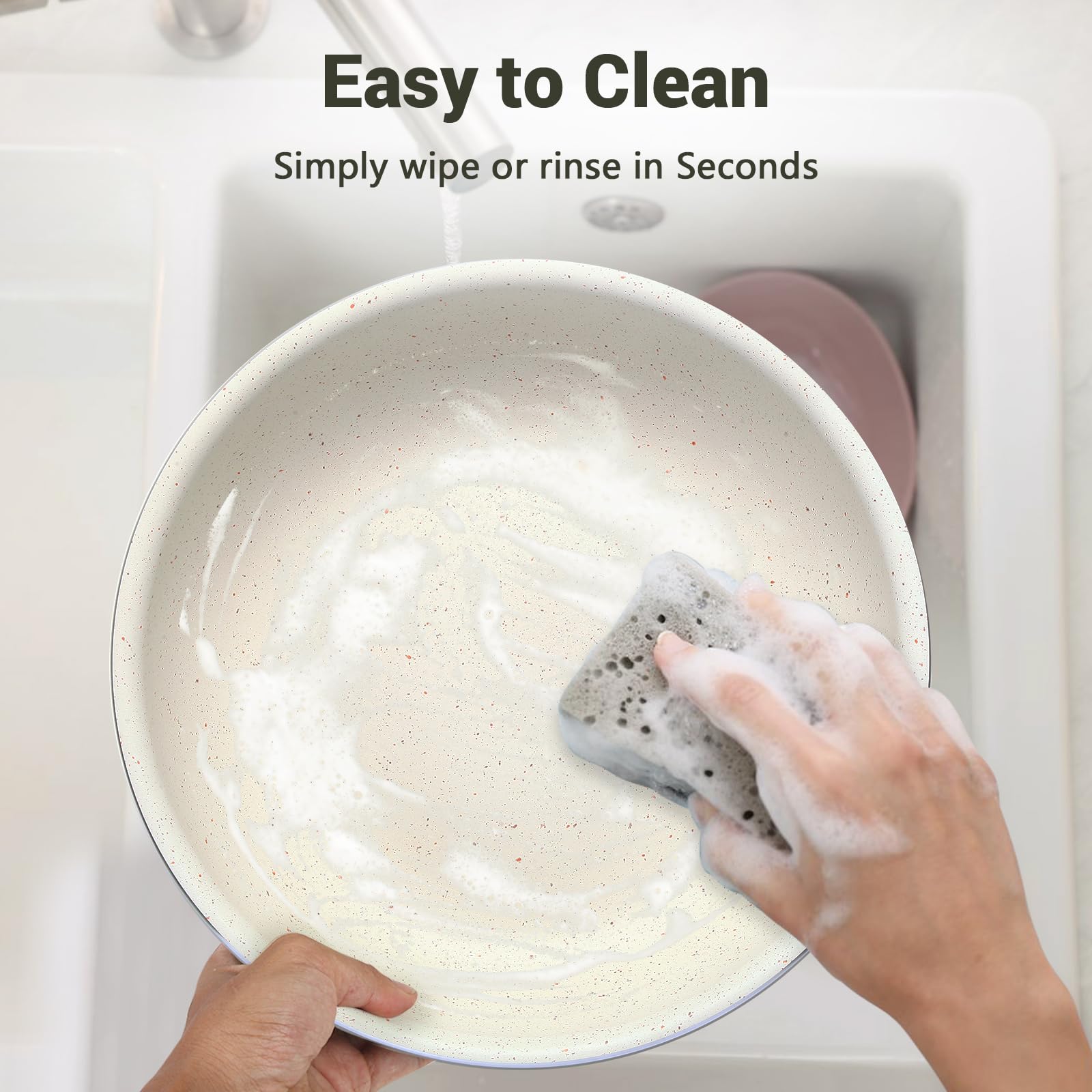 - 【Premium Granite Nonstick】M MELENTA nonstick cookware set feature long-lasting granite nonstick coating, free of PFAS, PTFE, PFOA, lead, and cadmium. Excellent nonstick performance makes cleaning a breeze, simply wipe with a paper towel or rinse with water in seconds