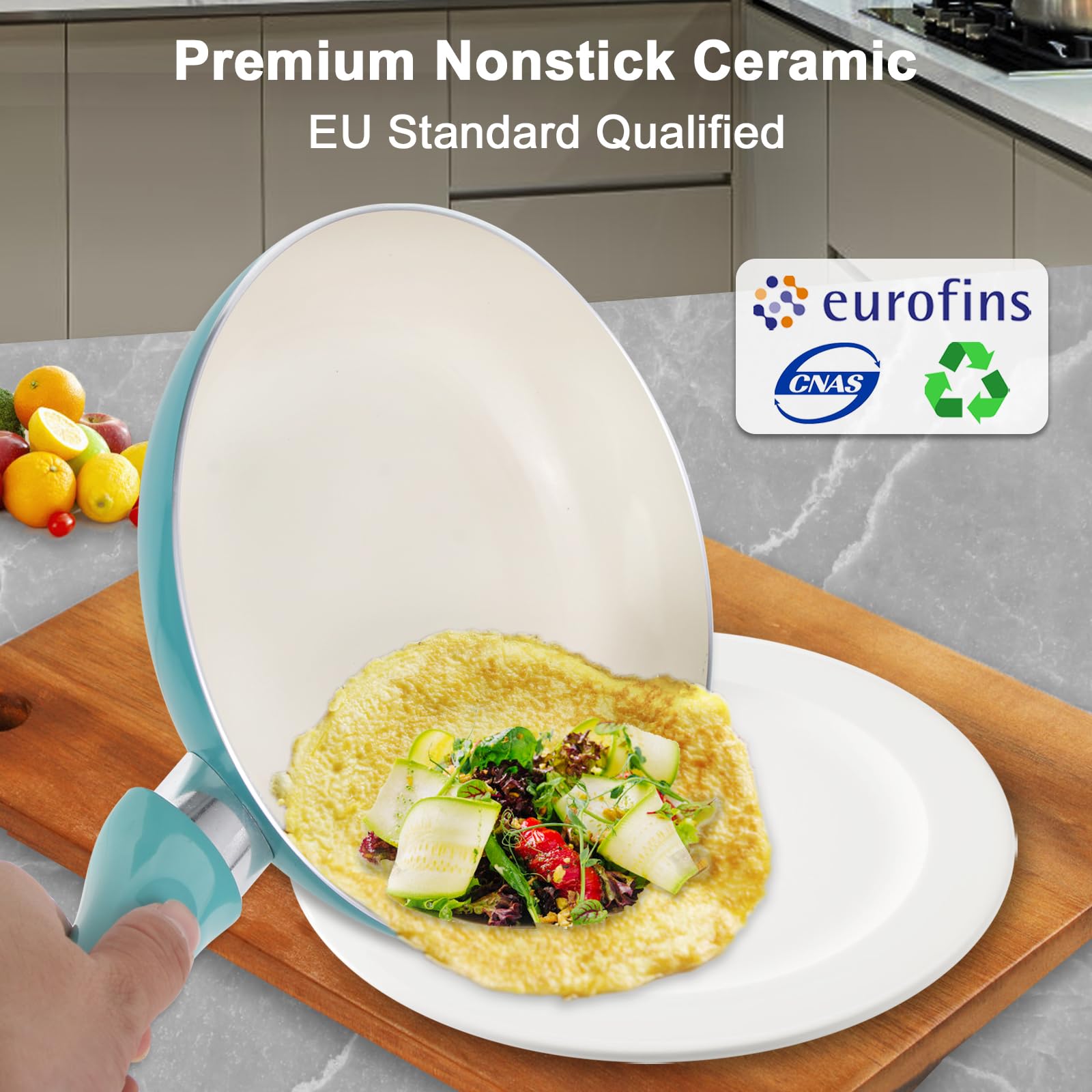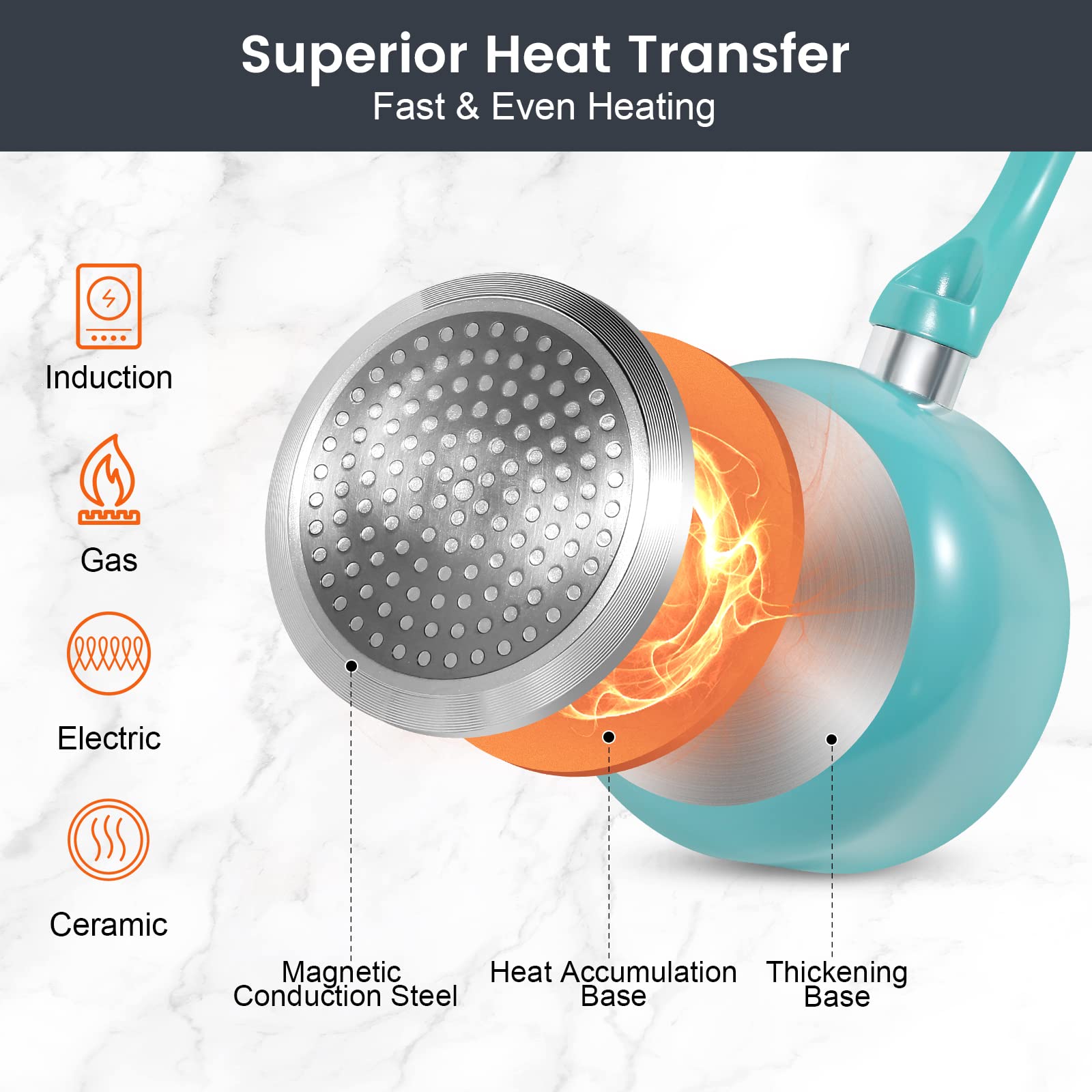- 【Beautiful Pots and Pans Set】M MELENTA kitchen pots and pans set is aesthetically made for everyday cooking. Vibrant gorgeous turquoise color and nonstick interior ceramic surface is attractive yet functional. This induction cookware sets comes with portable gift box, best choice for family use and house-warming gifts