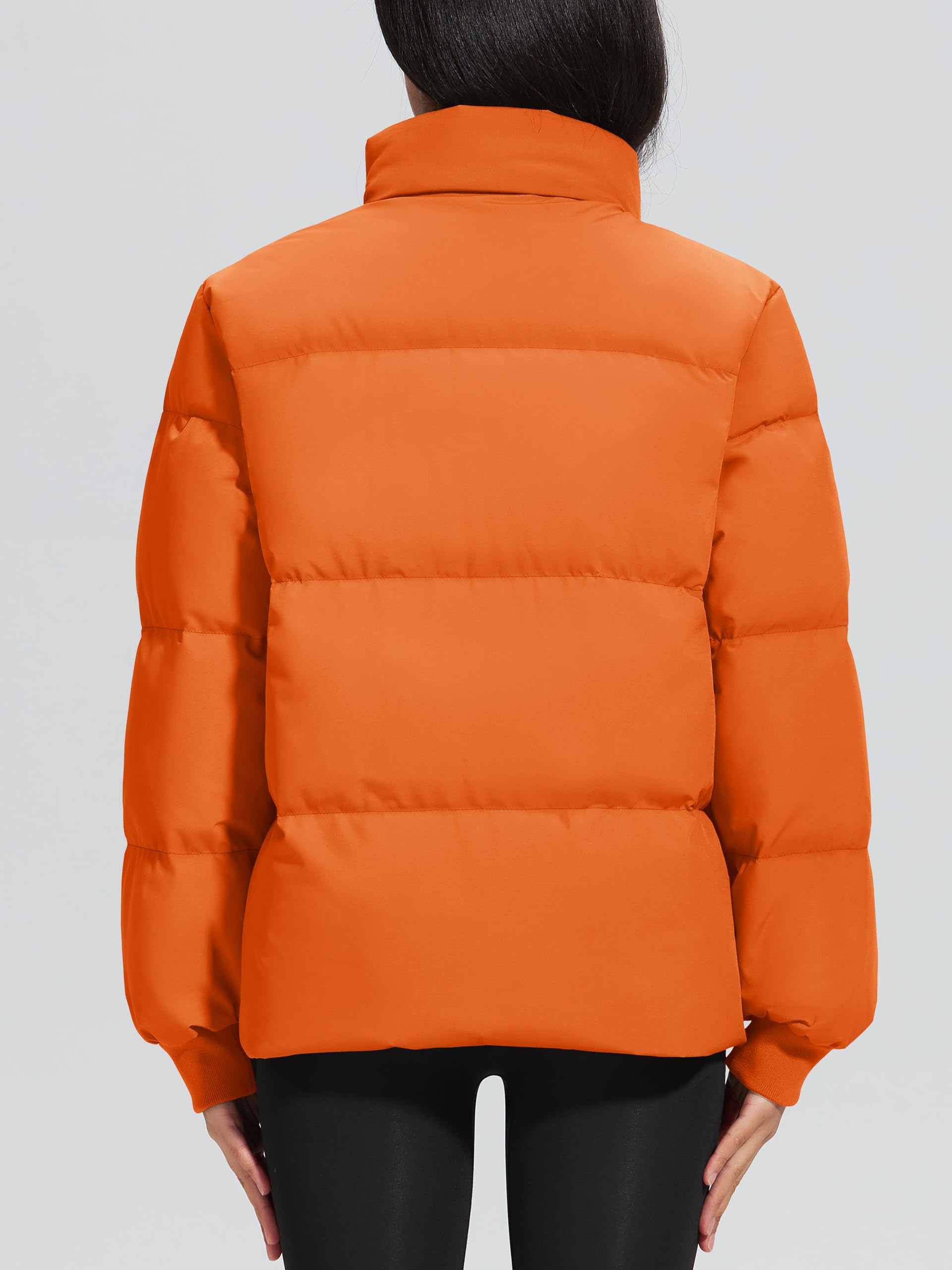 MAGCOMSEN Down Jacket Women Quilted Long Sleeve Puffer Coat Water-resistant Warm Outerwear with Pockets Orange L