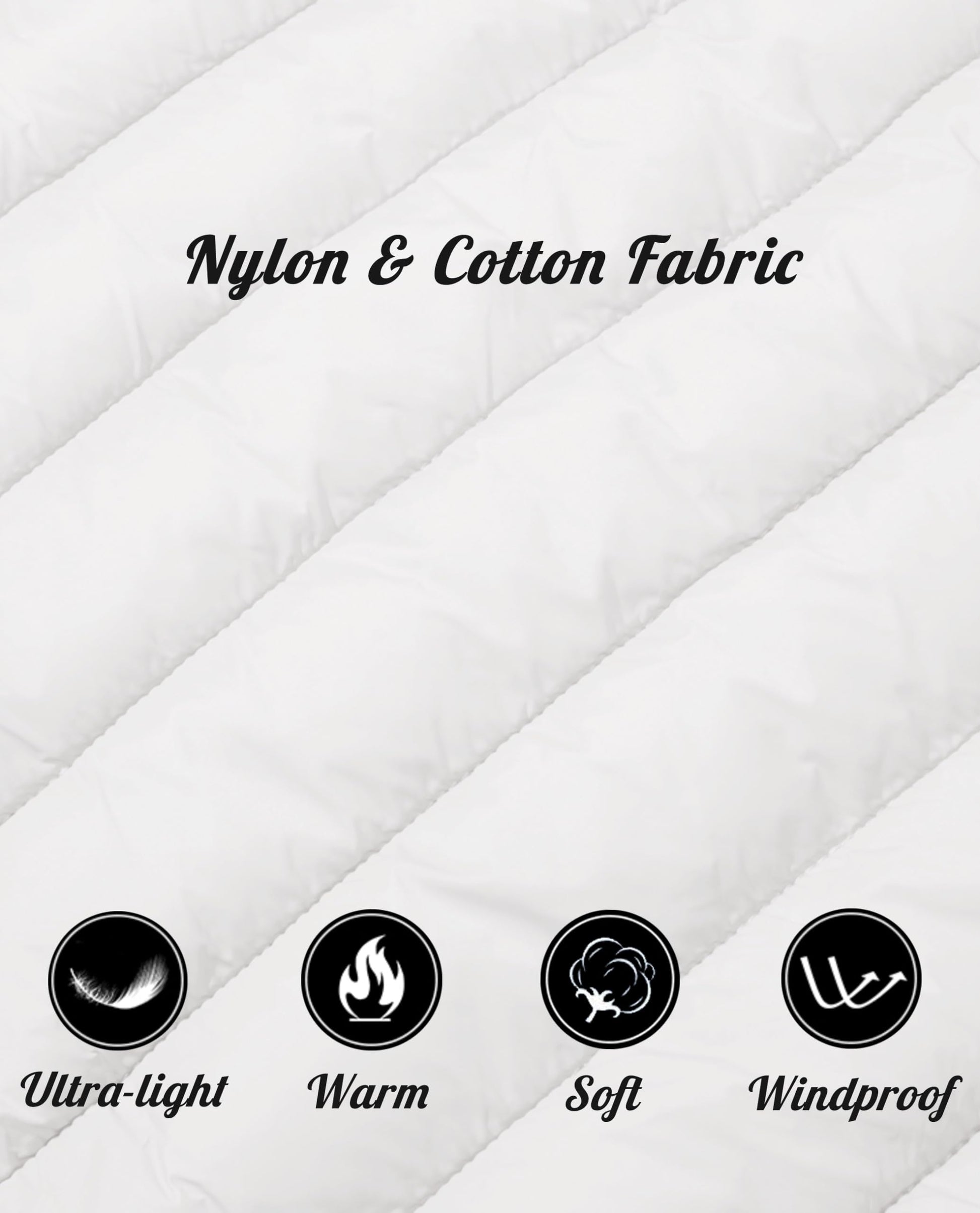- [ Ultra-light & Water Resistant ]: The shell of this puffer jacket is nylon, the interior is filled with polyester cotton. The maximum weight of this jacket is only 482 grams. And the water-resistant fabric can help you drier and warmer in rainy or snowy days.