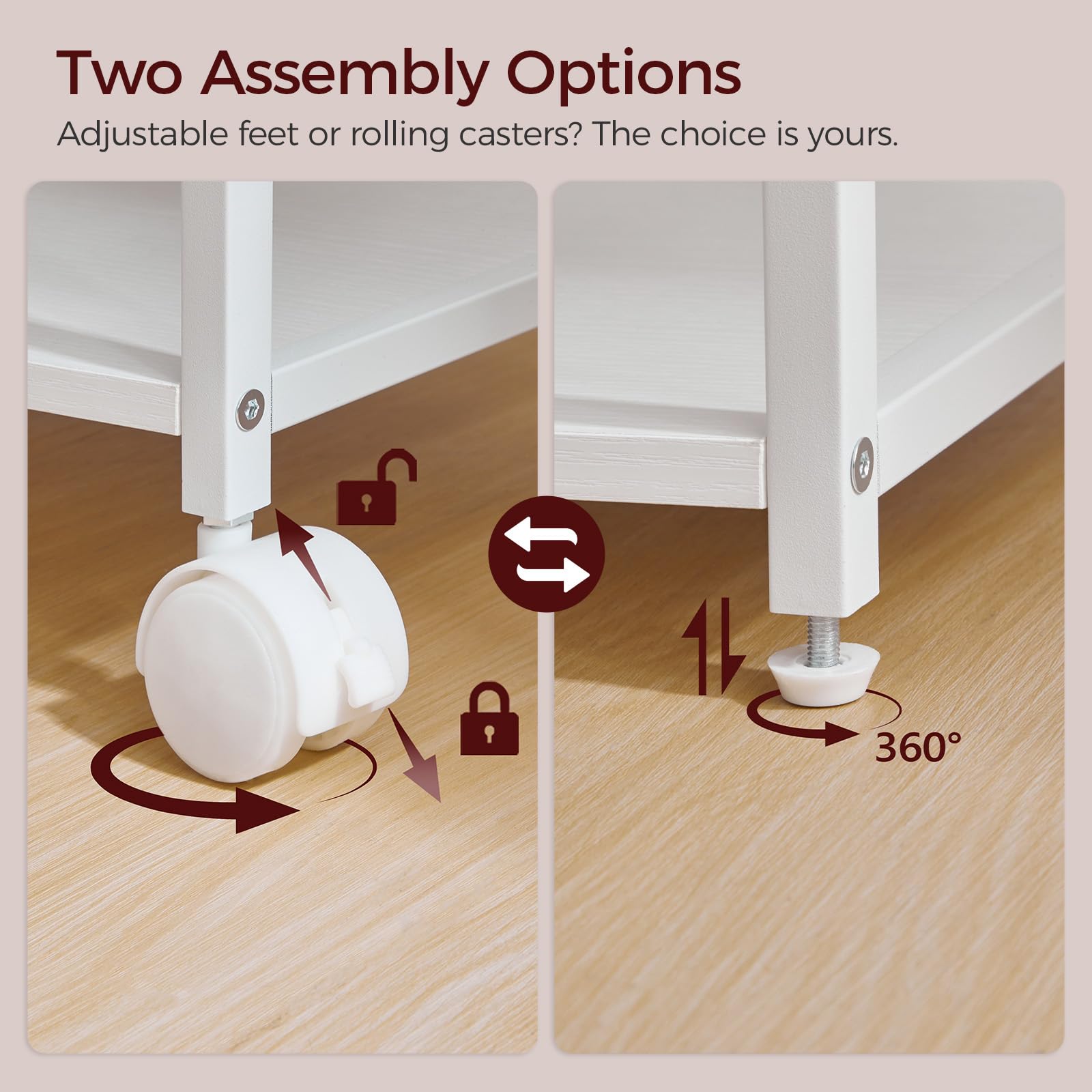 - Printer Table with Wheels: With 4 adjustable feet and 4 casters, this industrial printer stand can offer you different ways as a stationary table or a rolling cart upon your needs. 2 wheels can be locked to keep the printer cart still as needed