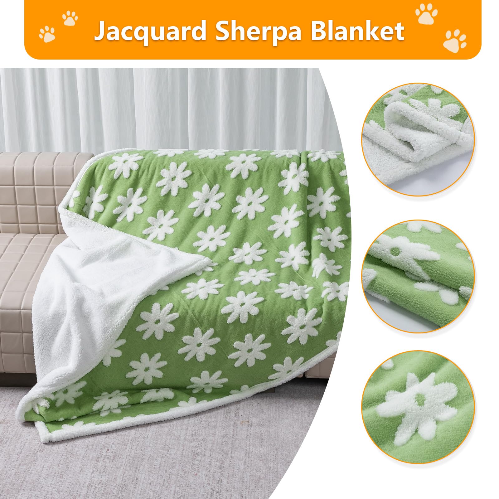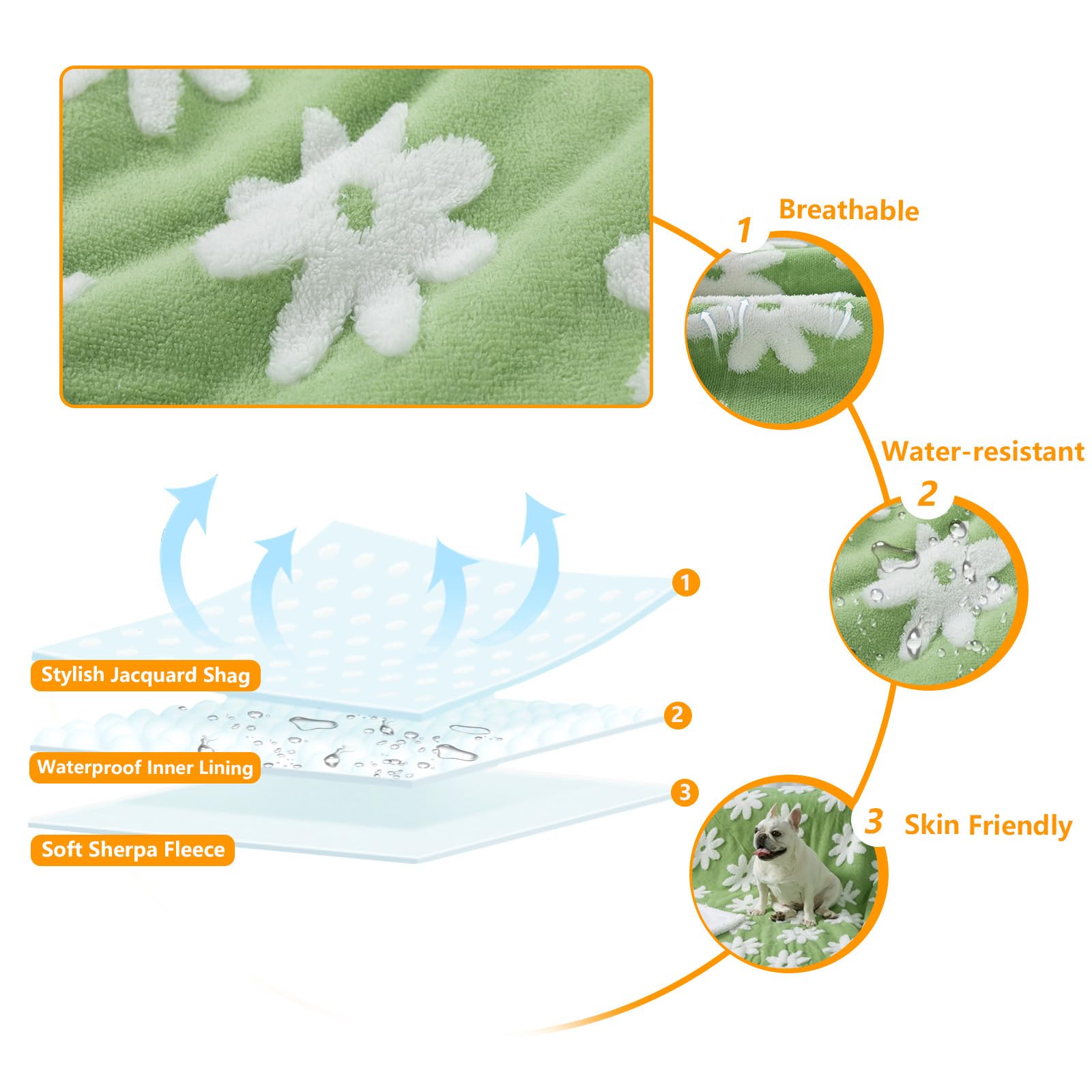 - Waterproof Dog blanket: Double-side Blankets are made of Stylish Jacquard Shag and Soft Sherpa Fleece, and blanket's inner lining ensures no spills or dribbles seep through to the other side, keeping your pet (and furniture) dry and clean.