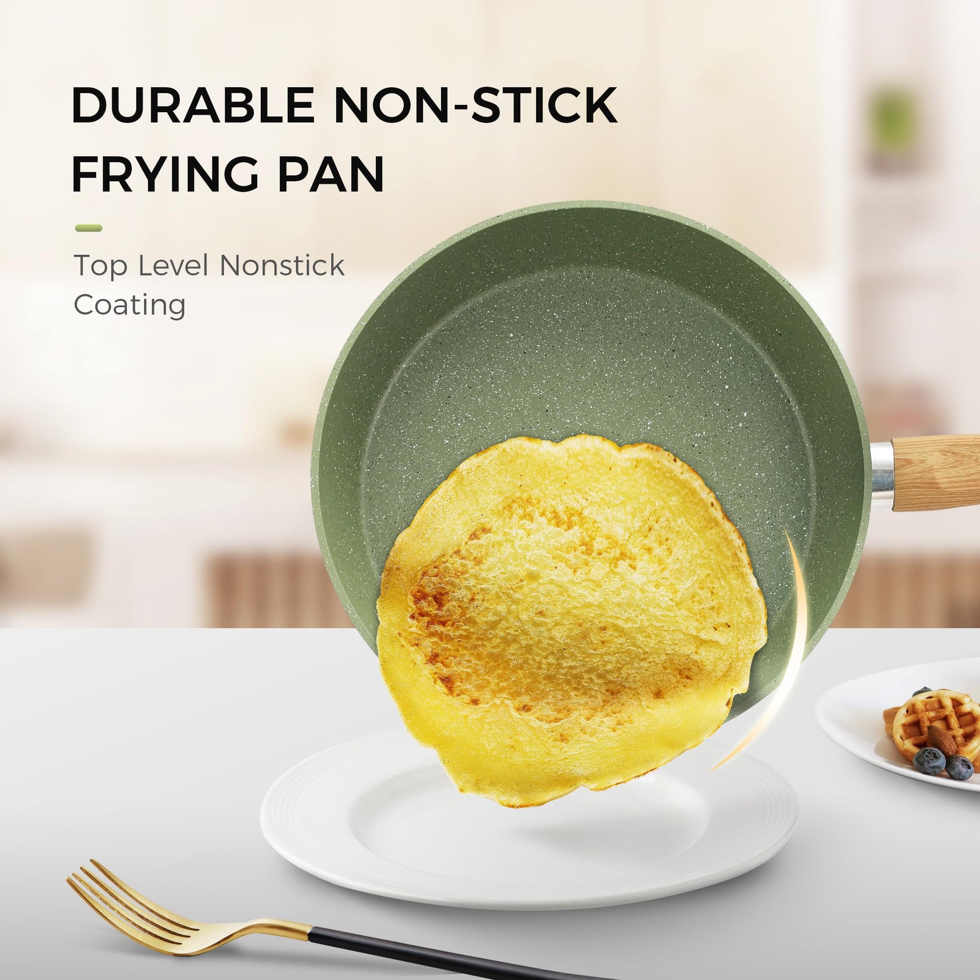 - Nonstick Granite Stone Coating: The pots and pans set features a durable granite stone coating that ensures easy food release and quick cleanup. The coating is also scratch-resistant and safe for use with metal utensils