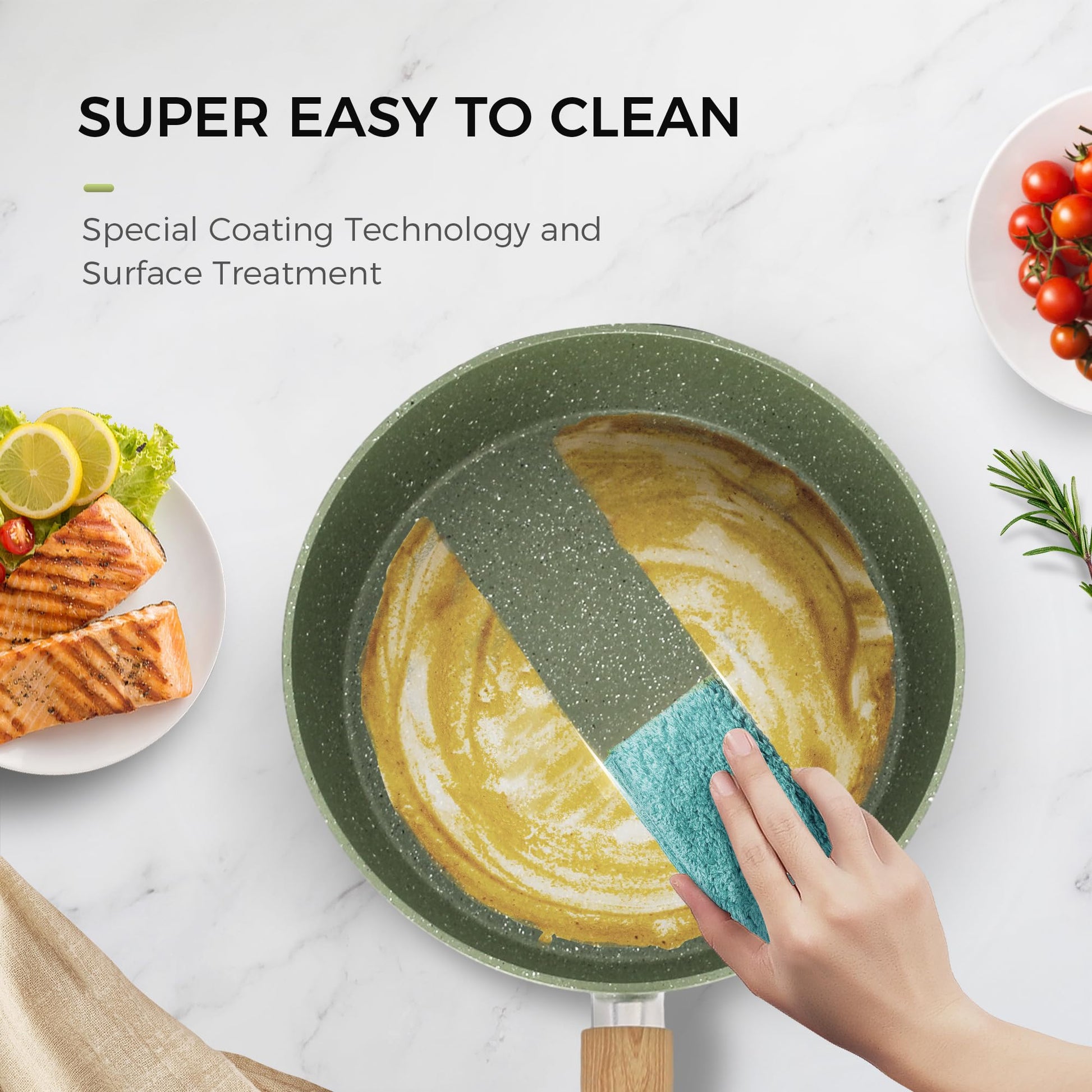 MAISON ARTS 17 Piece Pots and Pans Set Non Stick, Kitchen Cookware Sets with Nonstick Granite Stone Coating, Suitable for Induction Cooktops, Green