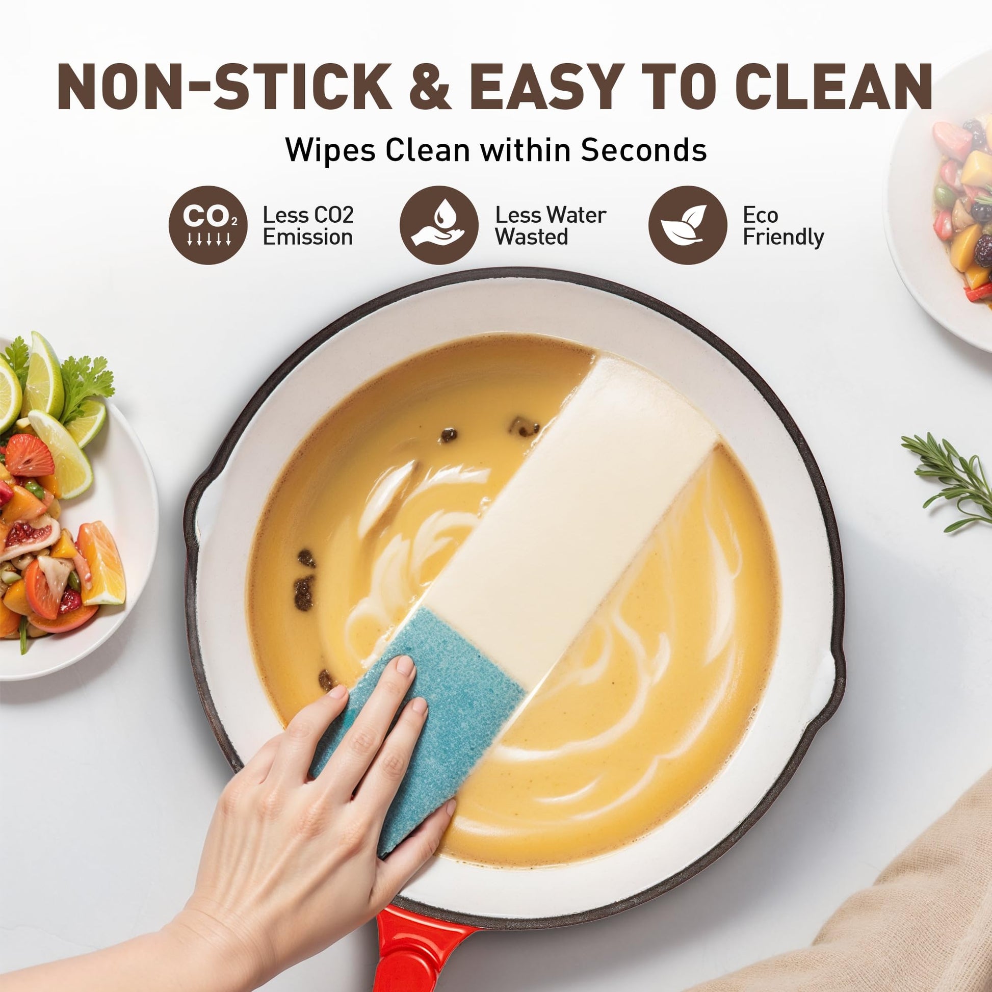 - 【Cleanup & Maintenance】: The enamel coating is smooth, non-toxic and non-stick, so stains don't stick to the cookware and cleaning is effortless. Use wood or silicone utensils instead of sharp metal ones, as this helps protect the cooking surface