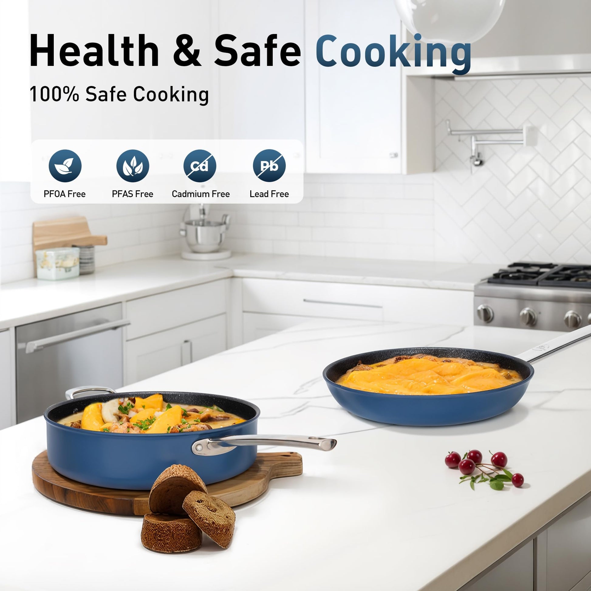 - 【Healthy Coating】: Non-stick cookware using plasma titanium and other high-tech composite material surface treatment, completely free of PFAS, PFOA, and other harmful substances, have better wear resistance and high temperature resistance performance