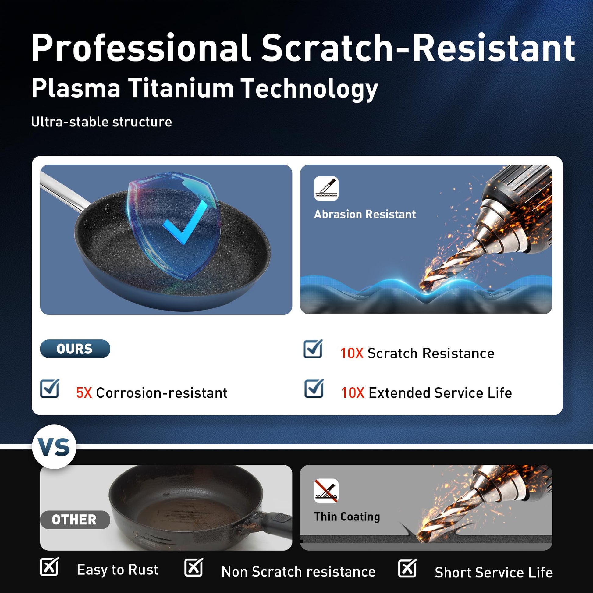 - 【Healthy Coating】: Non-stick cookware using plasma titanium and other high-tech composite material surface treatment, completely free of PFAS, PFOA, and other harmful substances, have better wear resistance and high temperature resistance performance