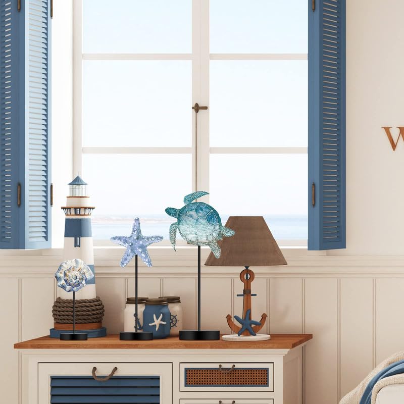 - Classic Summer Ocean Theme Decorations: these summer ocean decorations are designed in the shape of starfish, sea turtle and shell, painted in blue color, creating a strong summer ocean atmosphere, suitable as party decorations or daily decorations