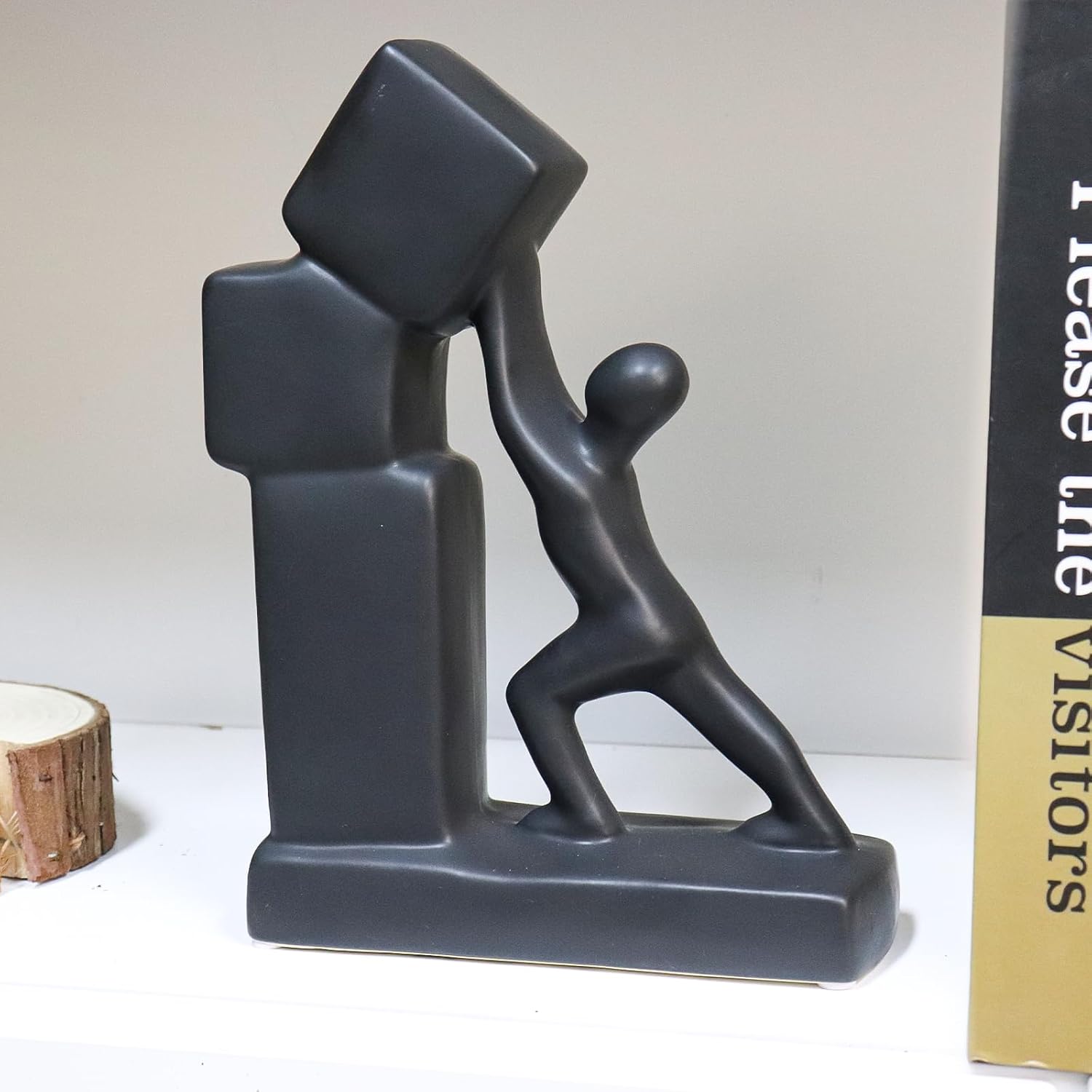 MAKHOT Home Decoration Modern Art Ceramic Ornament, Black Ceramic Home Office Decorations for Desk, Living Room, Dining Room and Coffee Table Centerpieces Black
