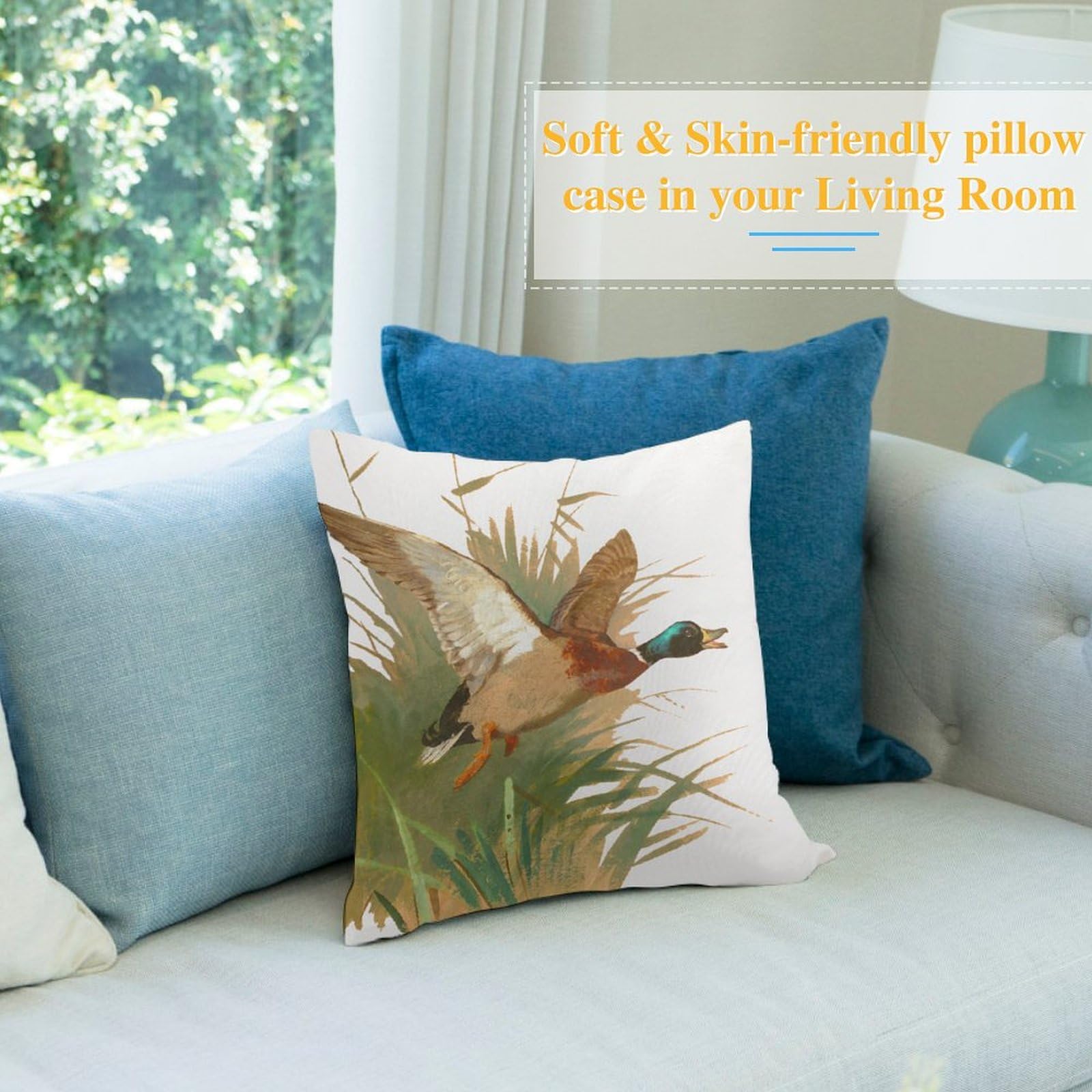 Mallard Duck Luxury Velvet Pillow Cover 18x18 Inch Decorative Cushion Cases with Unique Bright Prints - Soft Comfortable & Hypoallergenic - Perfect for Sofa Bed and Home Decor