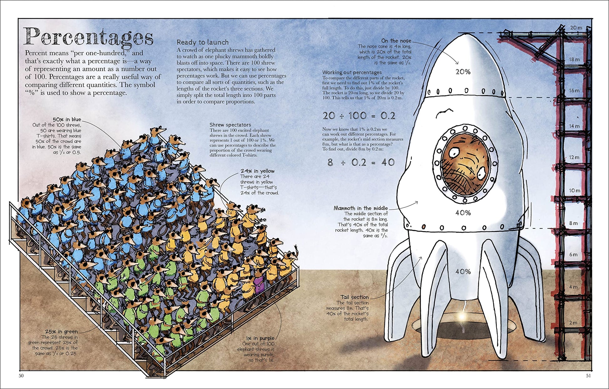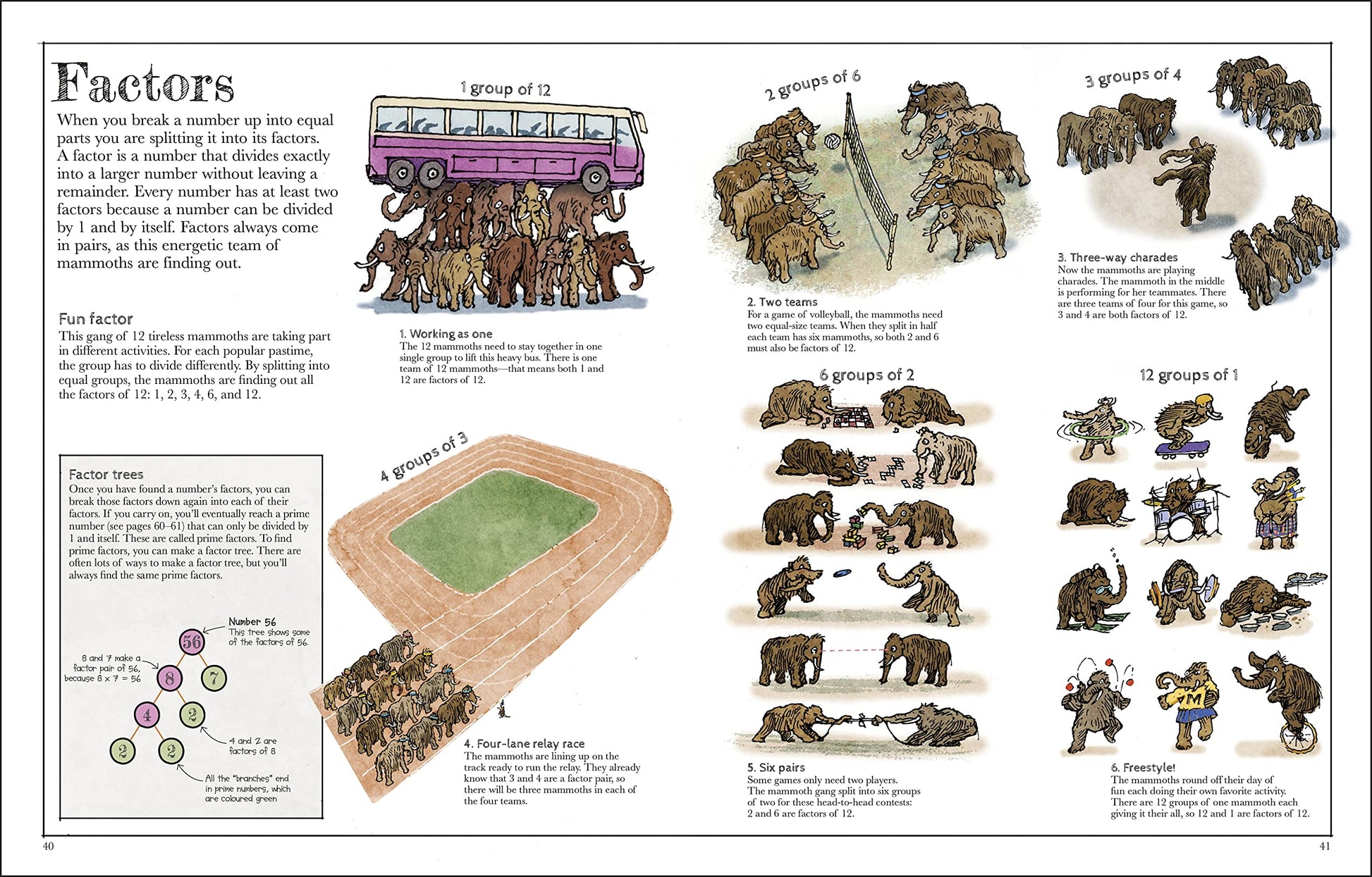 - Fun-filled illustrations show Macaulay’s mammoths exploring mathematical ideas demonstrating key mathematical principles in unusual and amusing ways.