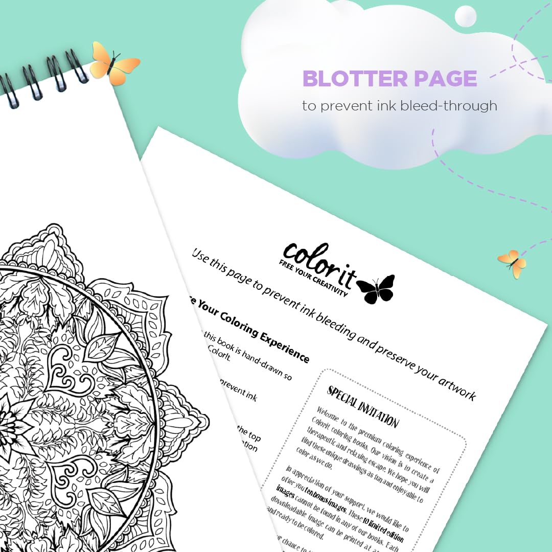 - Premium 175gsm Paper & Ink Blotter. Our premium artist-quality thick paper and ink blotter keep your work pristine and prevent bleeds. It's the perfect canvas for colored pencils, art markers, glitter gel pens, or any coloring medium of your choice.