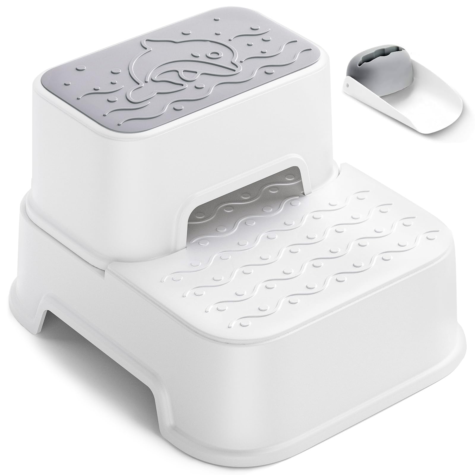 MangoHood Step Stools for Kids - Double up Toddlers Stool Multifunctional Toilet Stepping Stool for Kids Anti-Slip Step Stool for Bathroom Sink, Potty Training, Kitchen (White-1Pack)