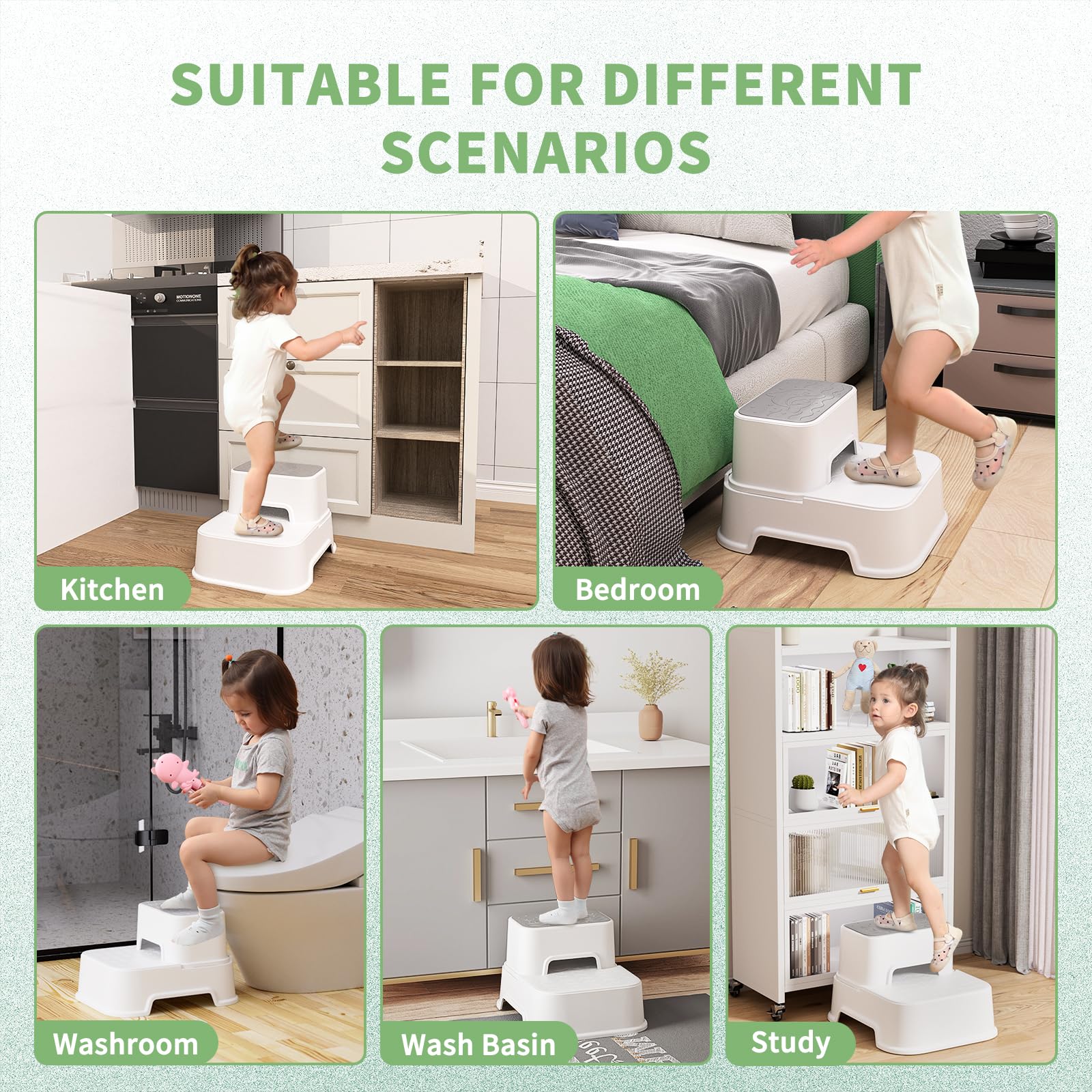 - Two-in-One Design: Our two-in-one design potty train step stool is easy to assemble in just one step and can be adjusted to fit your needs. This versatility not only extends the life of the kids step stool for closet, but also provides greater convenience, ensuring you get the most value out of our versatile step ladder toddler.
